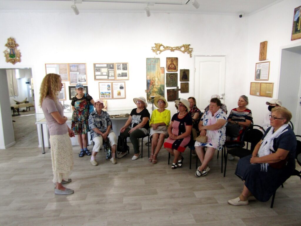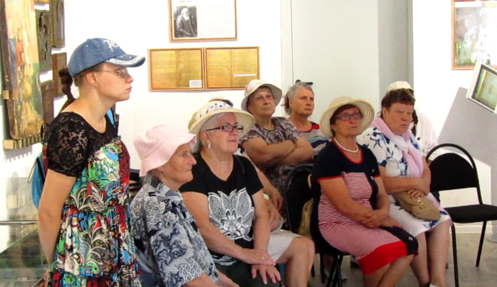 Александрина Владимировна с удовольствием рассказала пожилым людям и с ограниченными возможностями здоровья о ценности экспонатов музея и их значимости для поколений. Отметила также, что музей словно «пропитан» духом народности, всеобщей сплоченности; каждый, кто участвовал в создании музея — вложил в него частичку своей души.