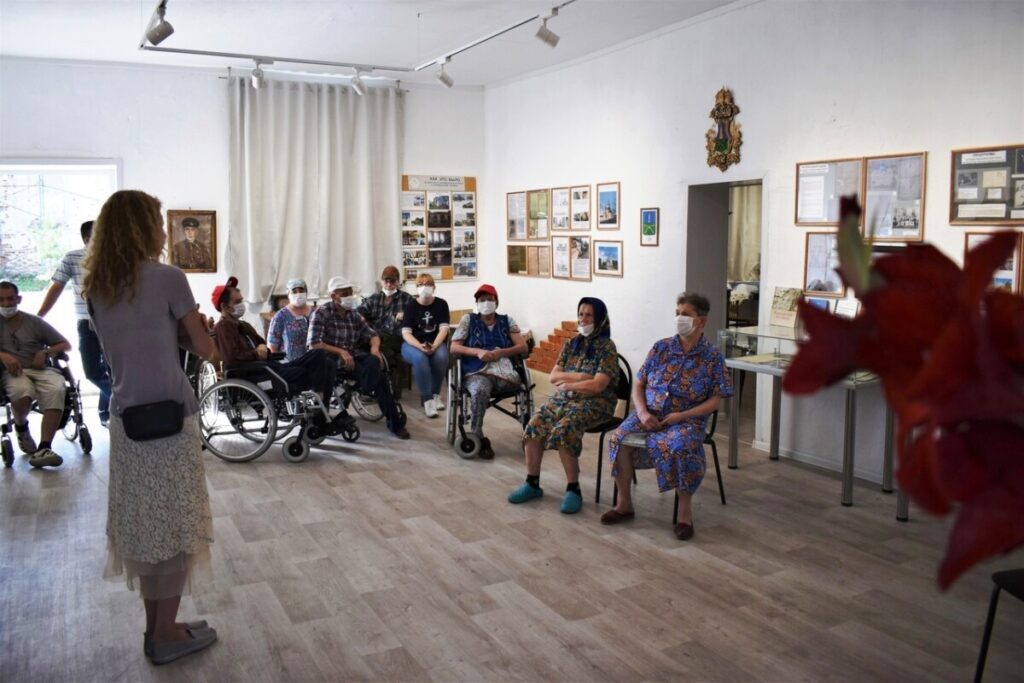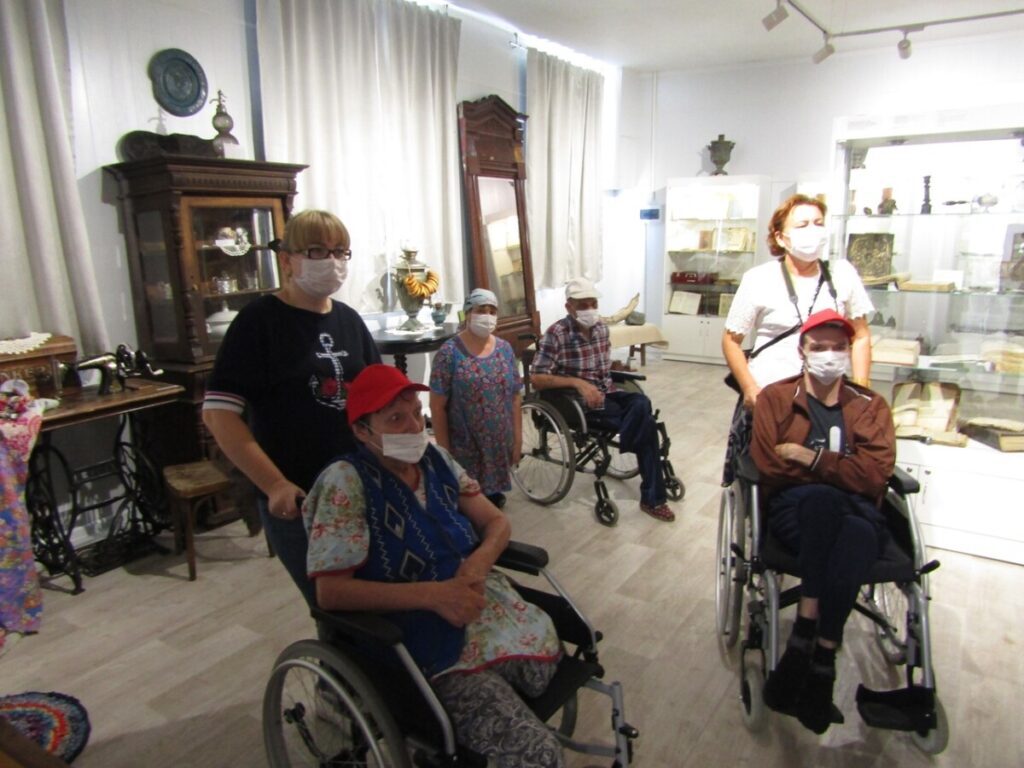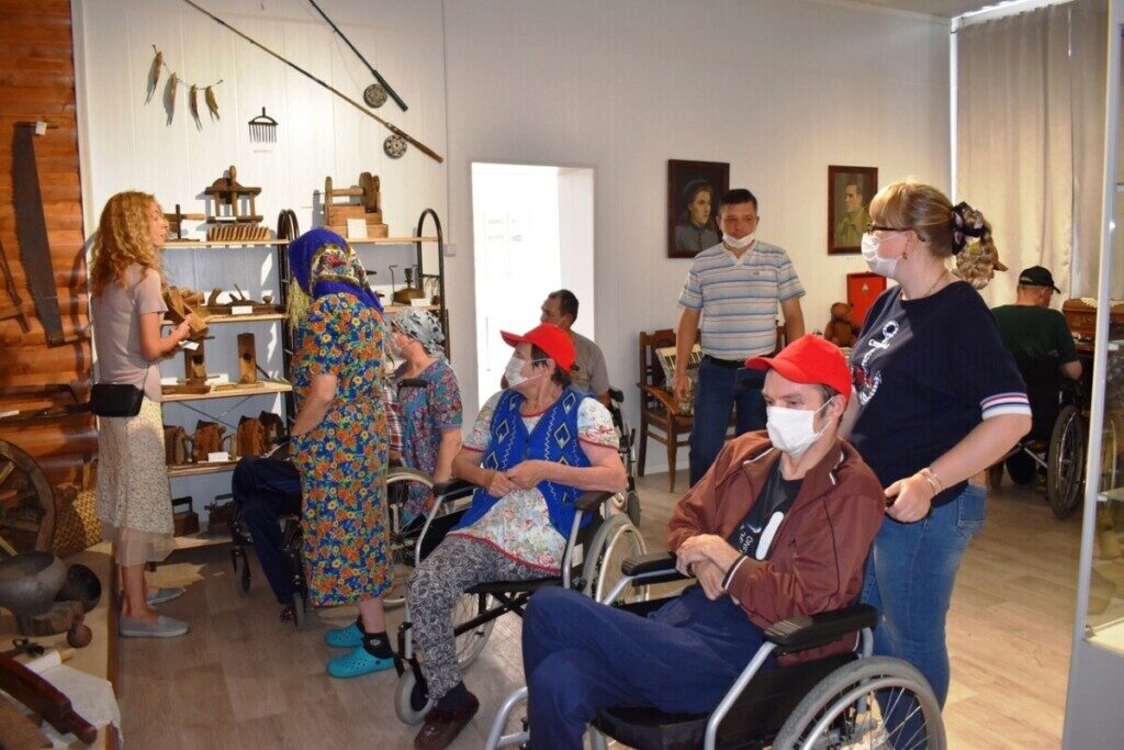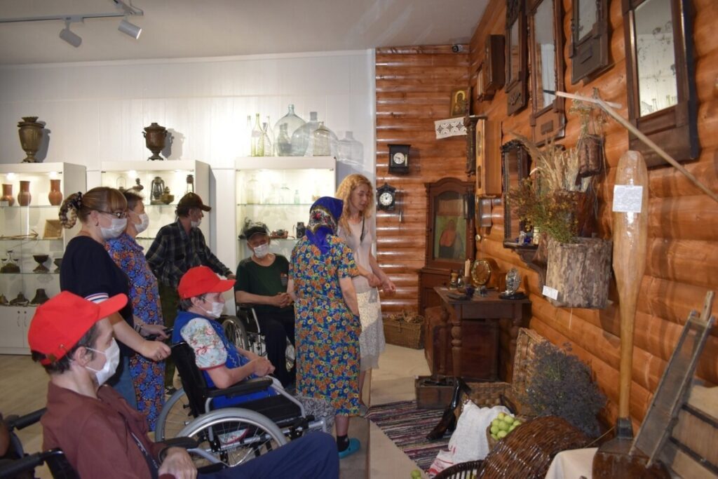 А дальше наш музей посетили работники и подопечные Дома Милосердия — наши ближайшие соседи и давние друзья из ГБУ «Пильнинский Дом-интернат для престарелых и инвалидов».