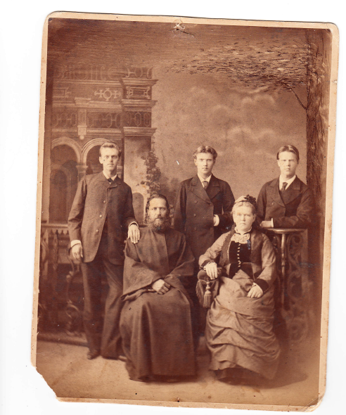 Поделюсь и другой (явно более ранней) прекрасной фотографией семьи Люцерновых, которая хранится в нашем музее. На ней – Владимир Петрович и Мария Павловна Люцерновы с сыновьями Петром, Павлом и Михаилом.