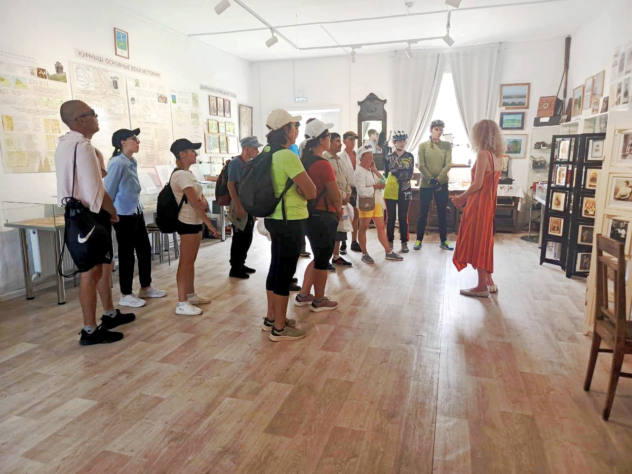 Гости слушали рассказ о Курмыше, музее и нашей экспозиции с неподдельным интересом, им было что рассказать в ответ: Курмыш и Ядрин — крепостные города, построенные друг за другом, почти ровесники — имеют общую историю и связаны глубоким родством.
