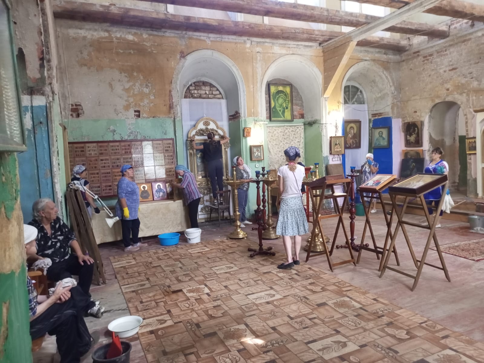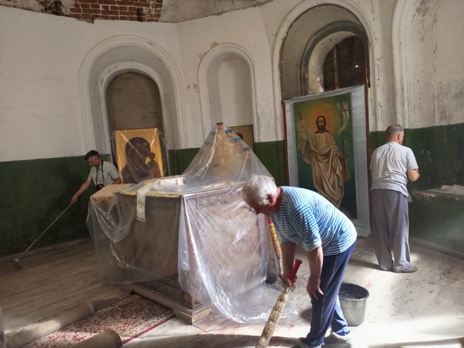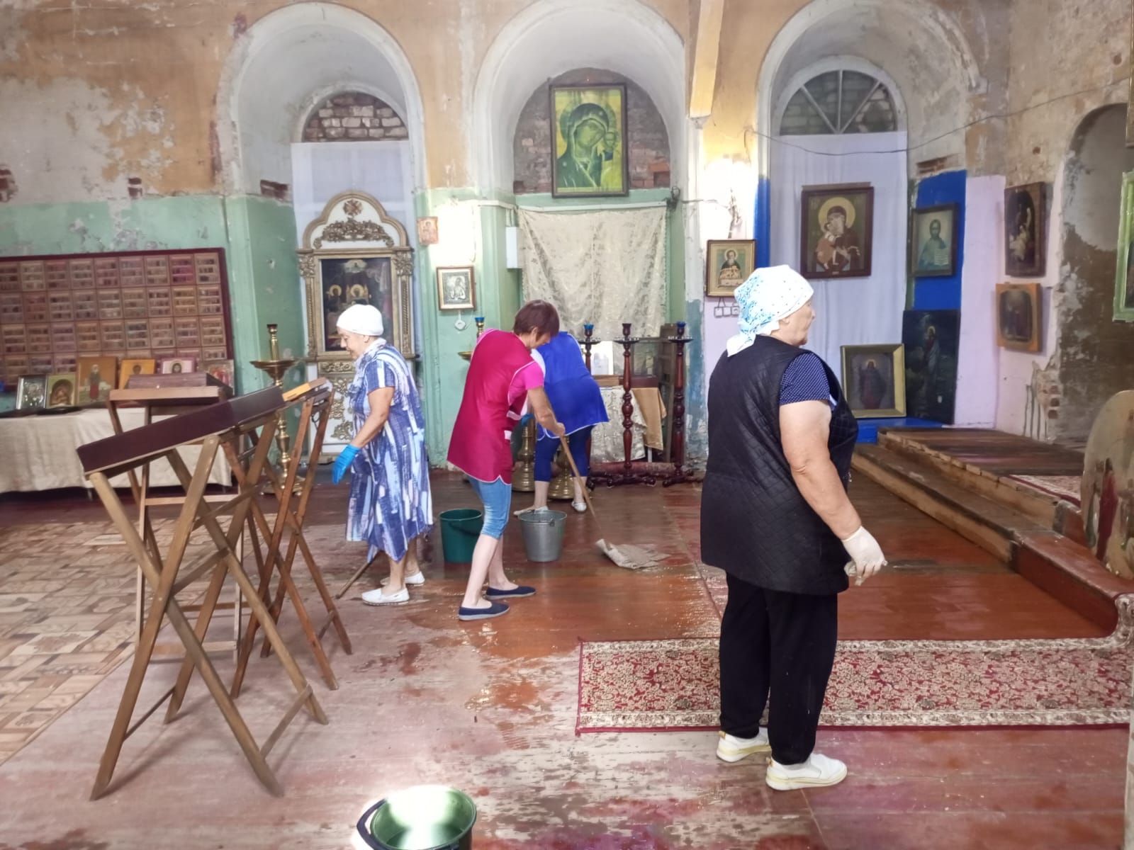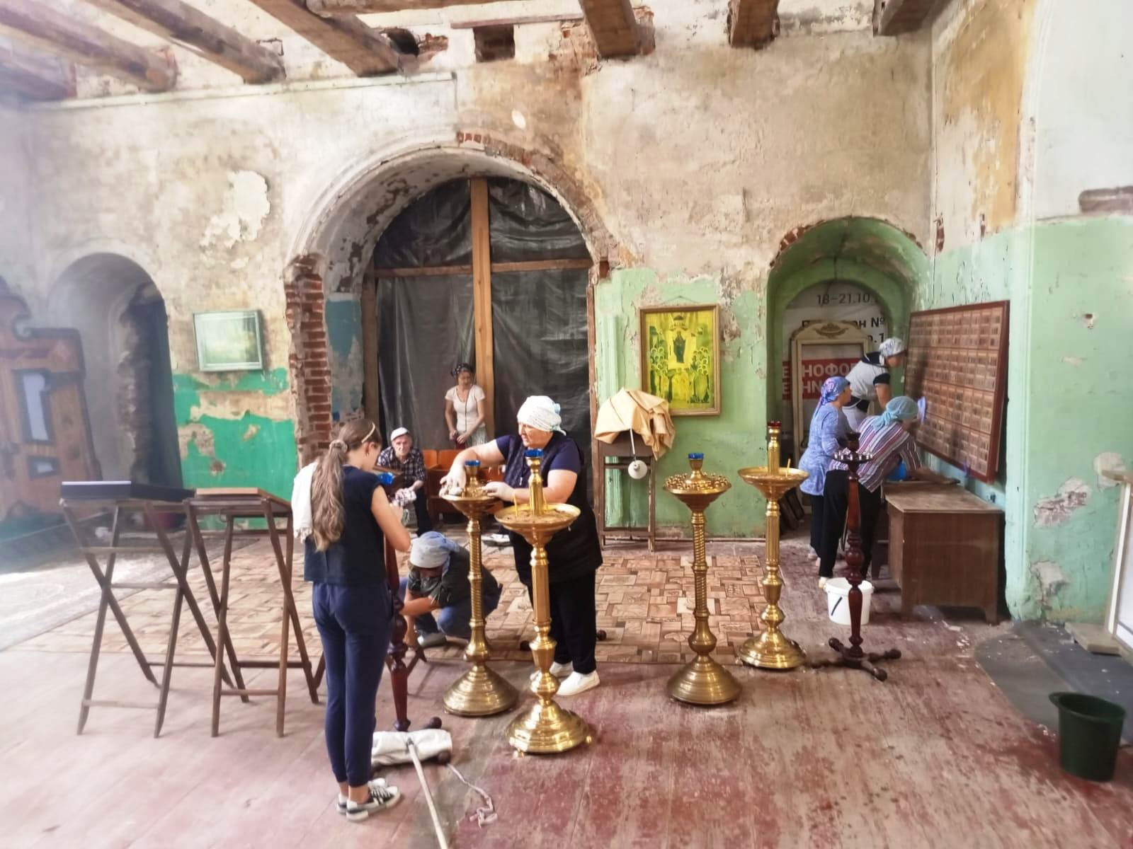 Вчера при виде нечистот, накопившихся в храме Рождества Богородицы за время, прошедшее с последней службы, хотелось плакать. А сегодня здесь уже всё сияет! Храм готовится к богослужению.