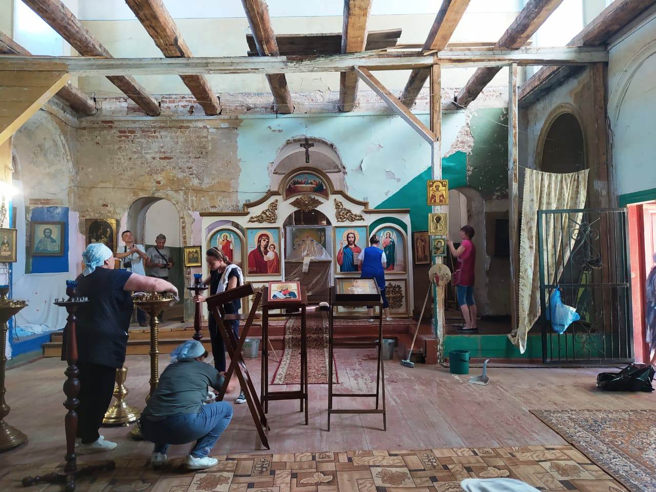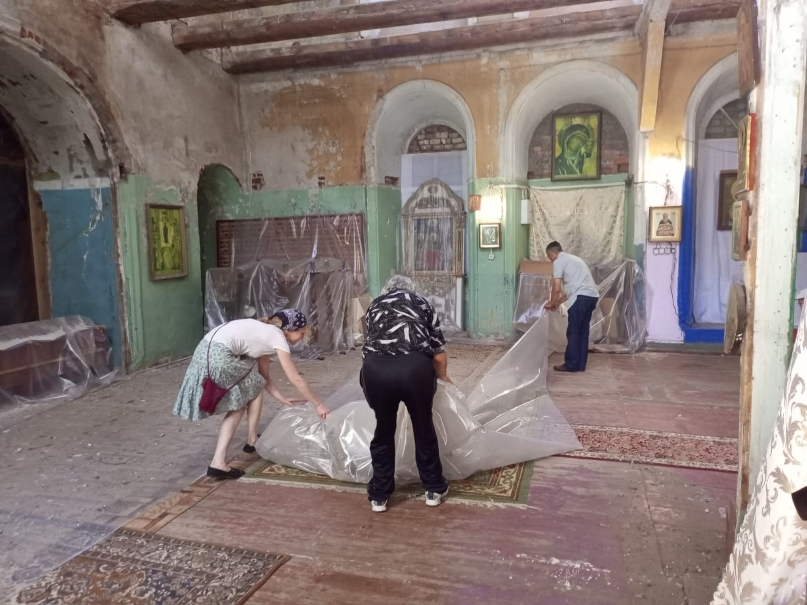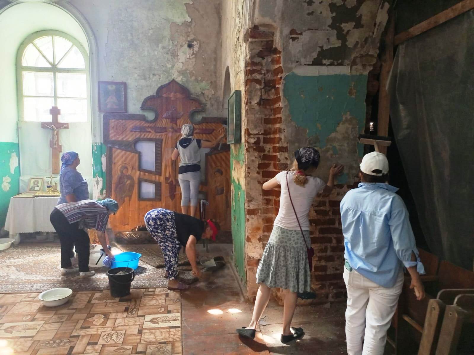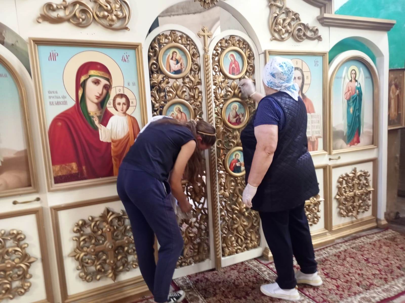 Вчера при виде нечистот, накопившихся в храме Рождества Богородицы за время, прошедшее с последней службы, хотелось плакать. А сегодня здесь уже всё сияет! Храм готовится к богослужению.