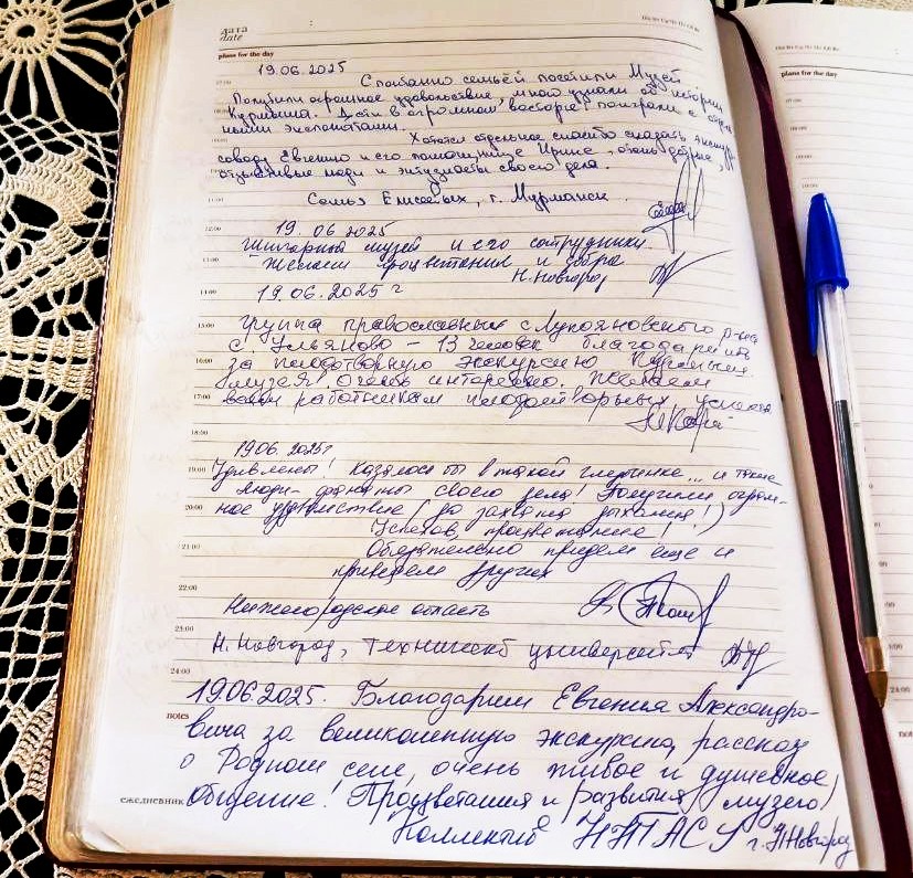 «Благодарим Евгения Александровича за великолепную экскурсию, рассказ о родном селе, очень живое и душевное общение! Процветания и развития музею!».