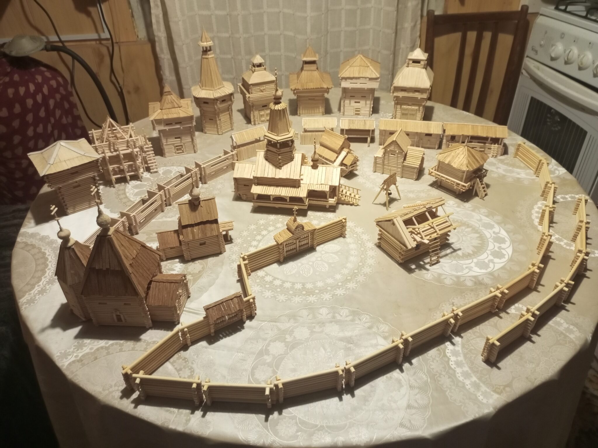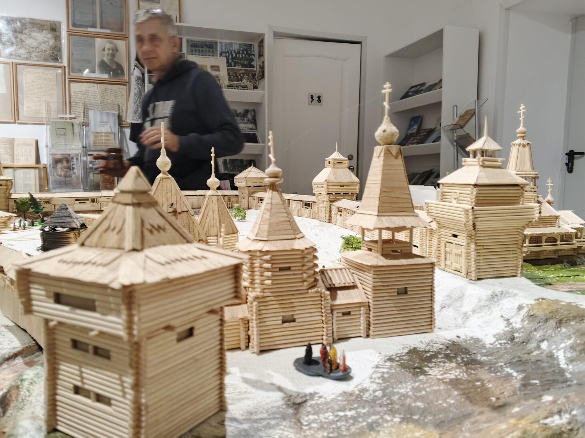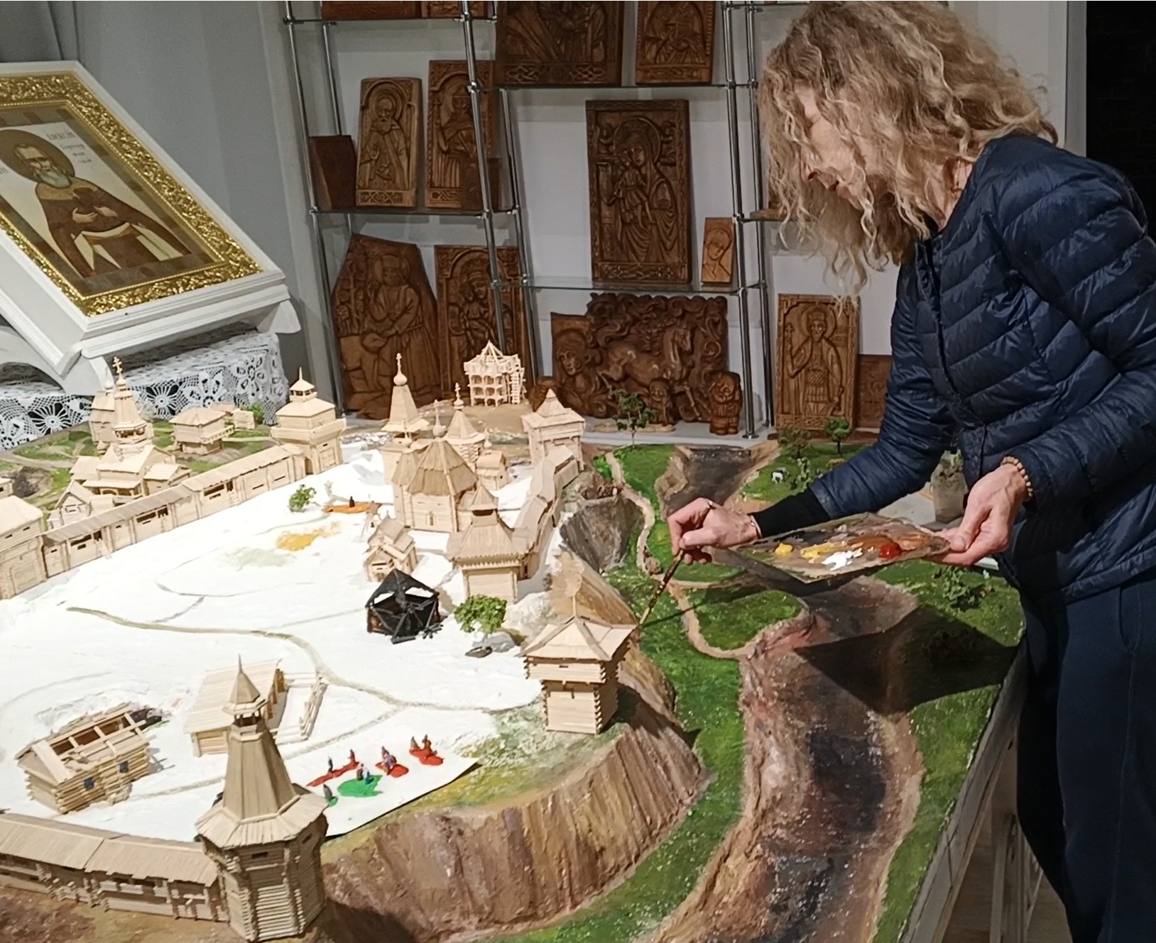 С конца августа Александрина Вигилянская с Евгением Палачёвым почти ежедневно колдуют над макетом старинного Курмыша, работа над которым была начата ещё полтора года назад. Написав проект для грантового конкурса Президентского фонда культурных инициатив и пообещав воссоздать в миниатюре старинную курмышскую крепость и Богородице-Рождественский монастырь на посаде для Курмышского краеведческого музея, наша команда, не дожидаясь итогов конкурса, взялась за дело. Евгений – за изготовление башен и храмов Курмыша периода XVI века, Александрина – за фигурки жителей, монахов, стрельцов и за всякую мелочовку.