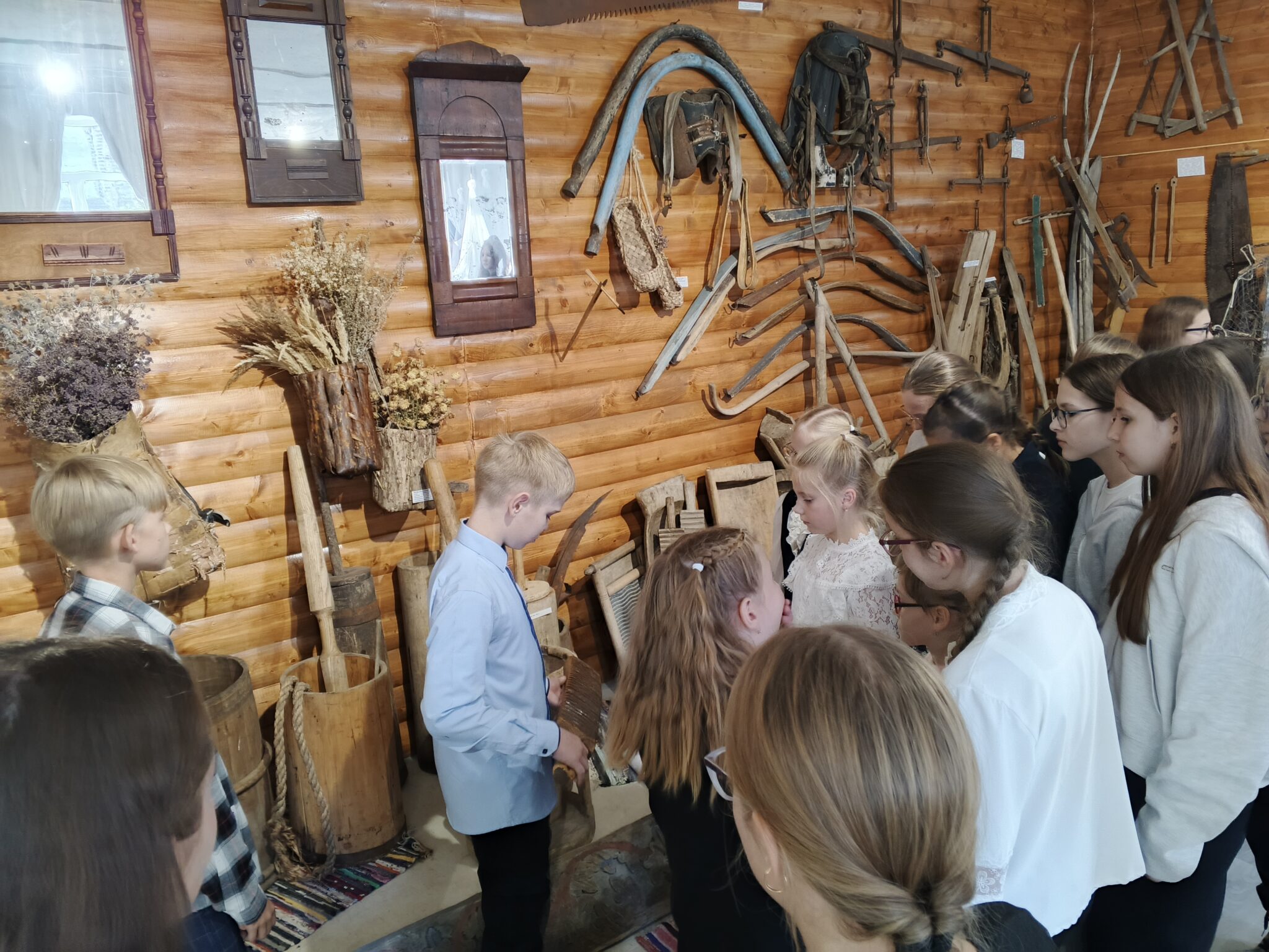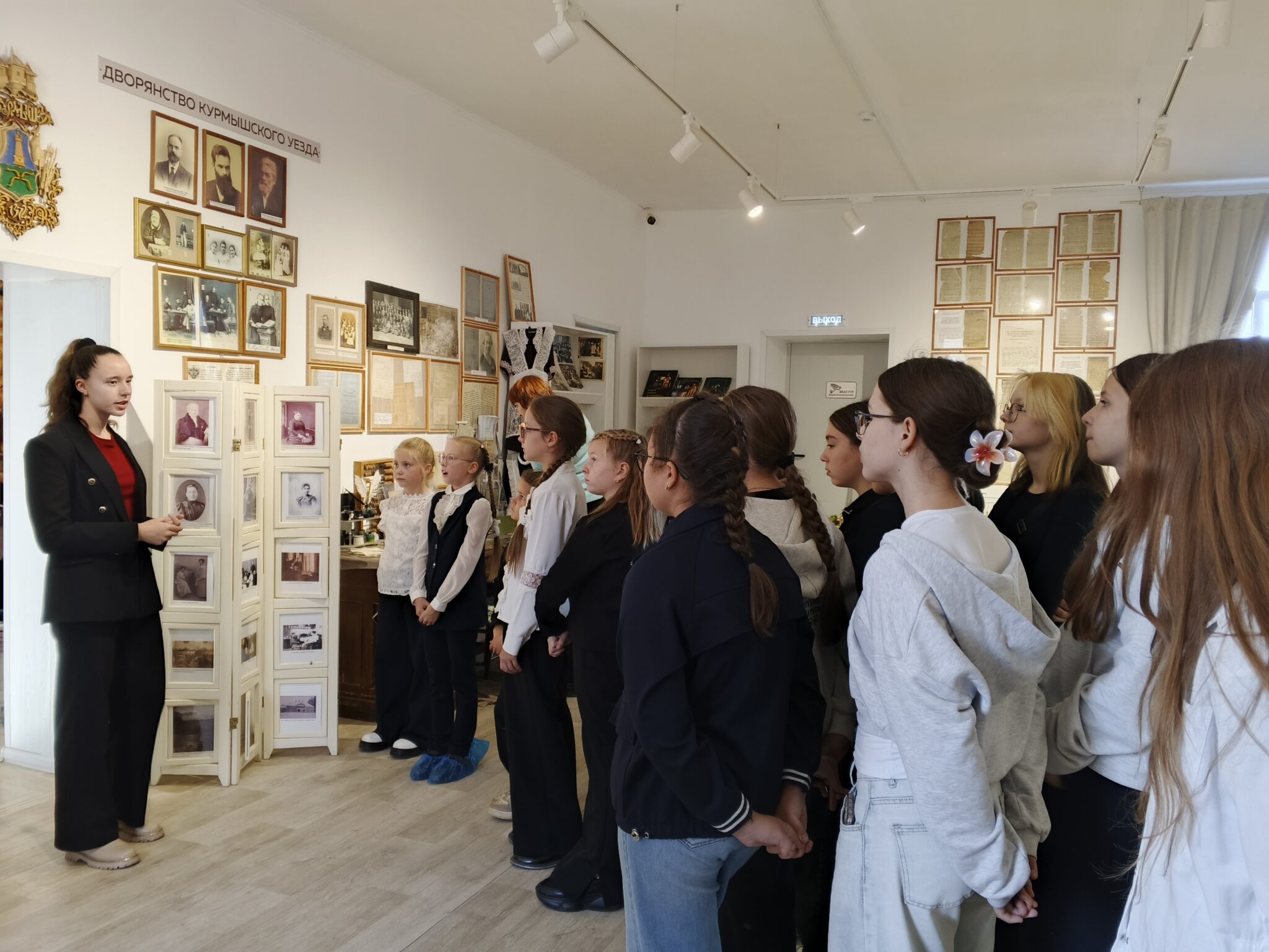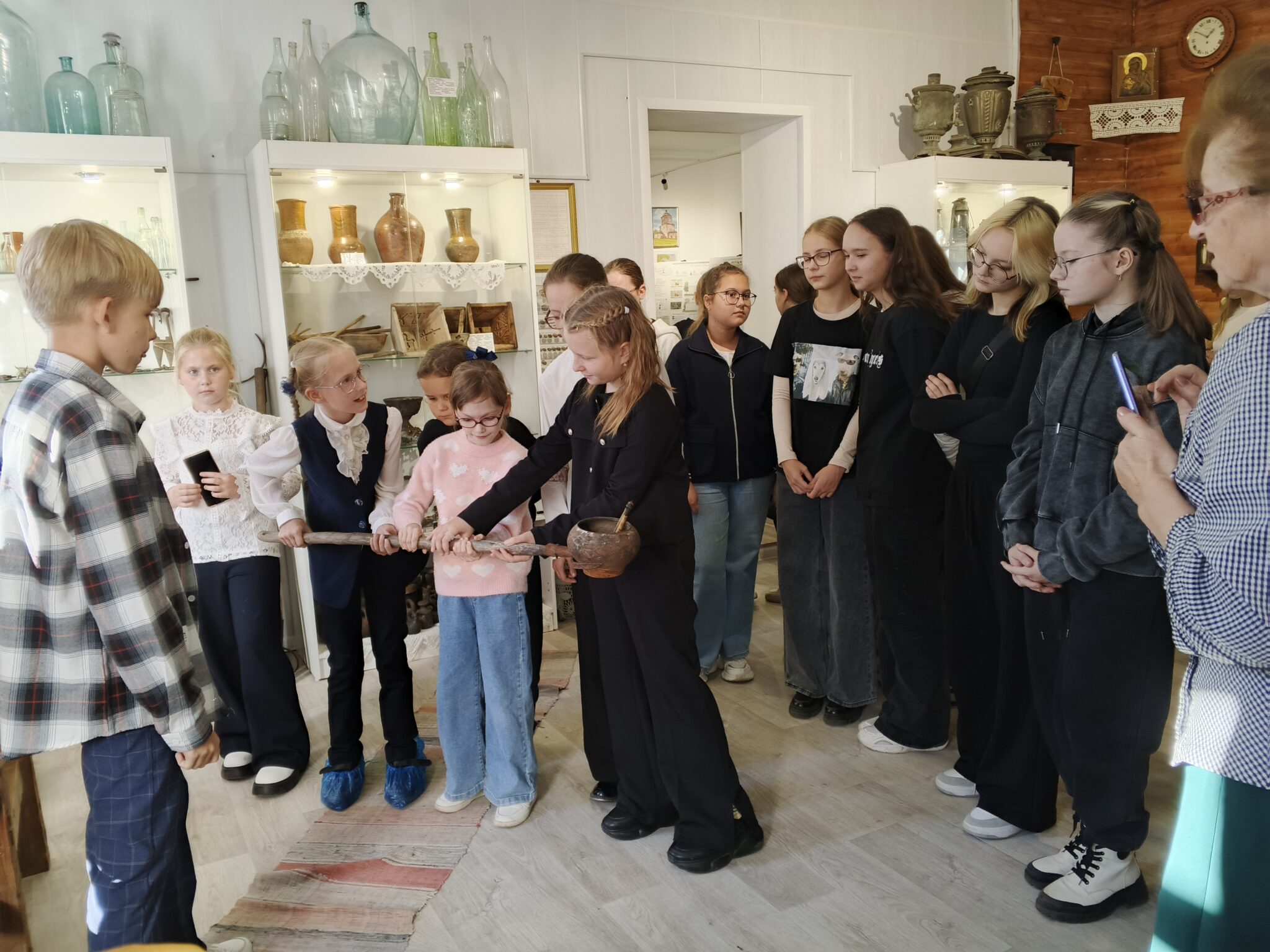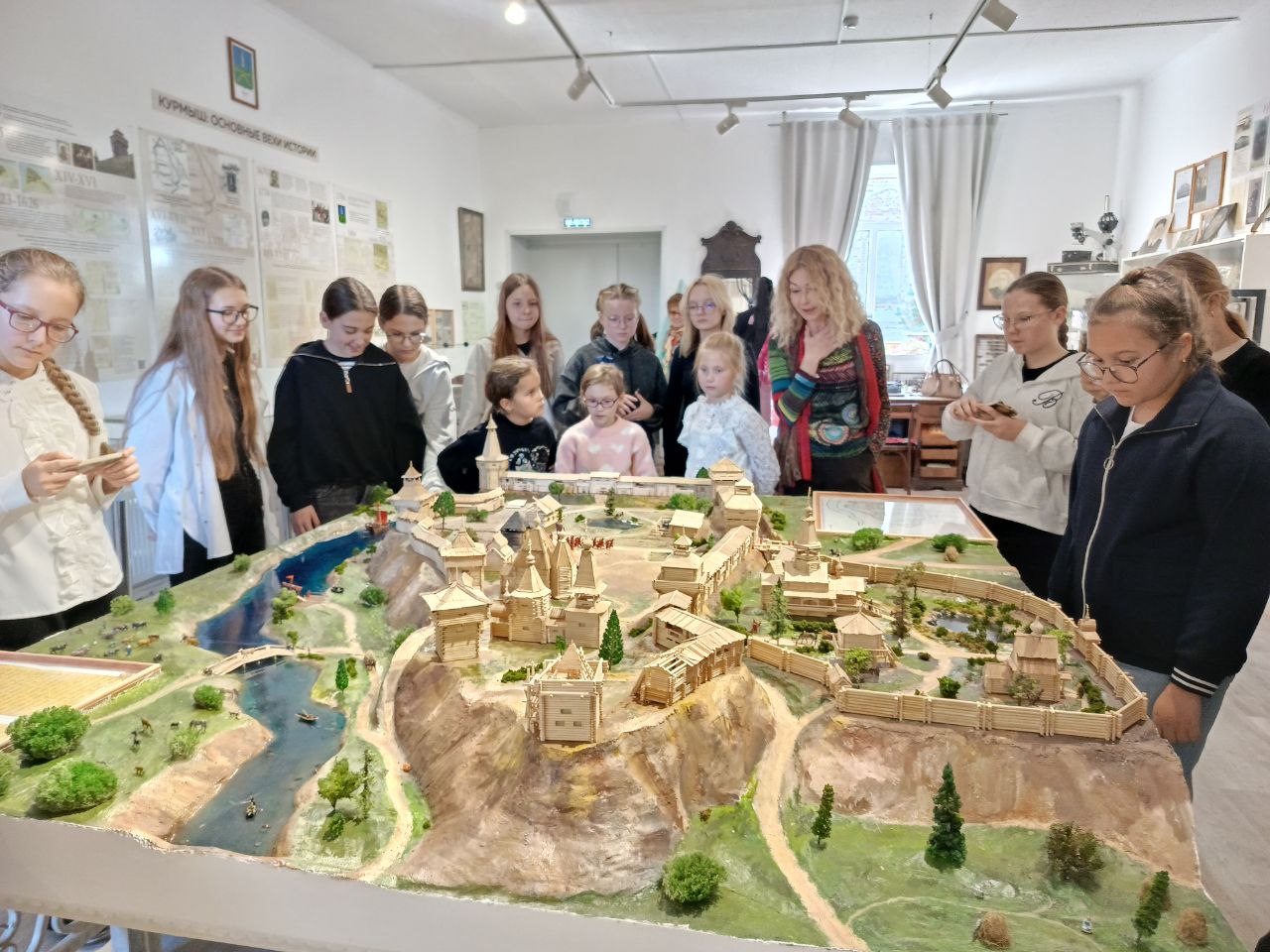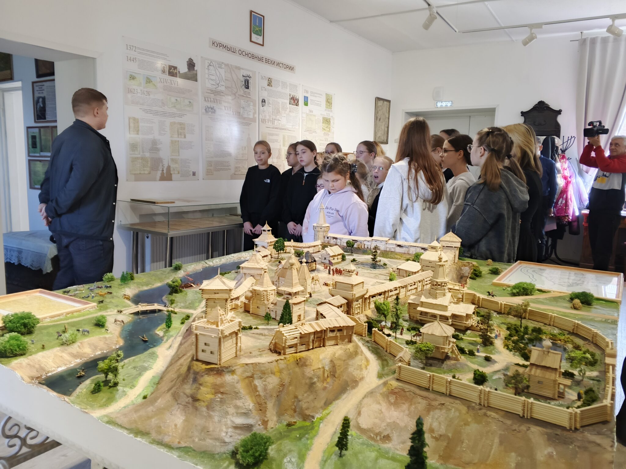 1 октября ученики Курмышской средней школы вновь превратились в экскурсоводов – принимали в курмышском музее гостей из Пильнинской средней школы «Содружество». У нас побывали ребята из 2 – 8 классов вместе с хранительницей школьного музея – Кяримей Ярулловной Сулимановой, которая уже не раз отзывалась на наши приглашения, с радостью присоединяясь со своими учениками к нашим музейным событиям и приключениям.