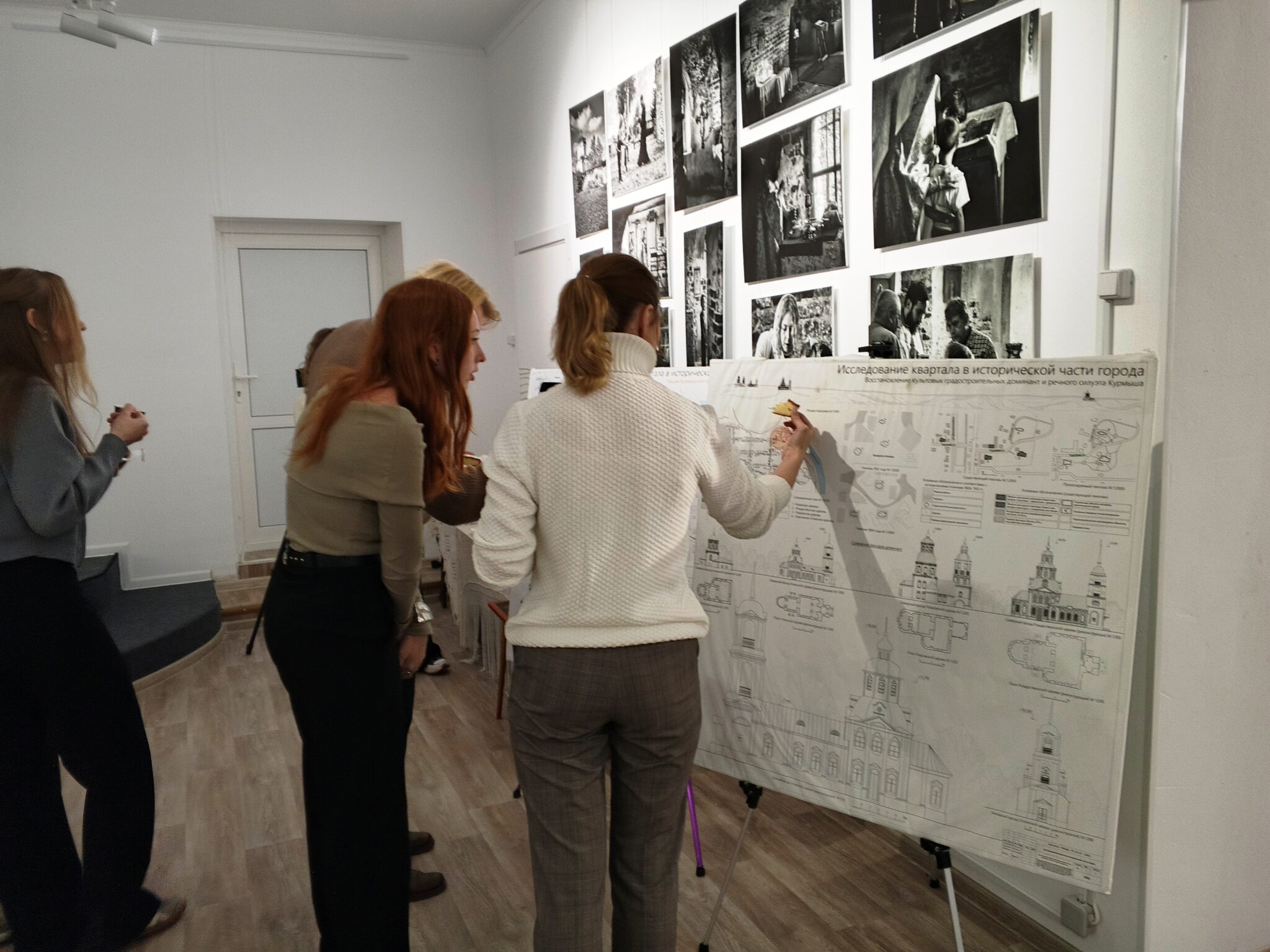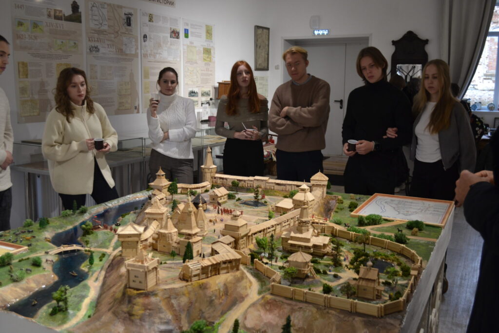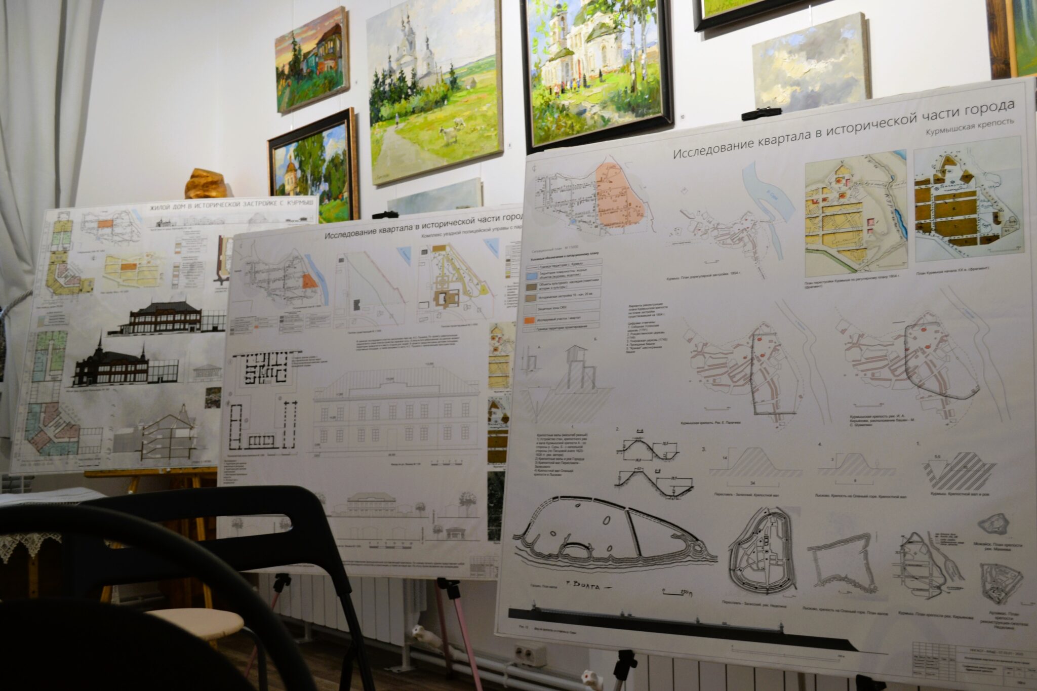 Приехали студенты кафедры истории архитектуры и основ архитектурного проектирования Нижегородского государственного архитектурно-строительного университета, которые на протяжении нескольких лет исследуют архитектурное наследие Курмыша и выполняют проекты по благоустройству территорий и реставрации курмышских ОКН. Поводом для встречи было открытие выставки студенческих проектов в нашем музее, к которому мы приурочили и торжественное открытие макета старинного Курмыша, изготовленного, без преувеличения, гениальным мастером Евгением Палачёвым.