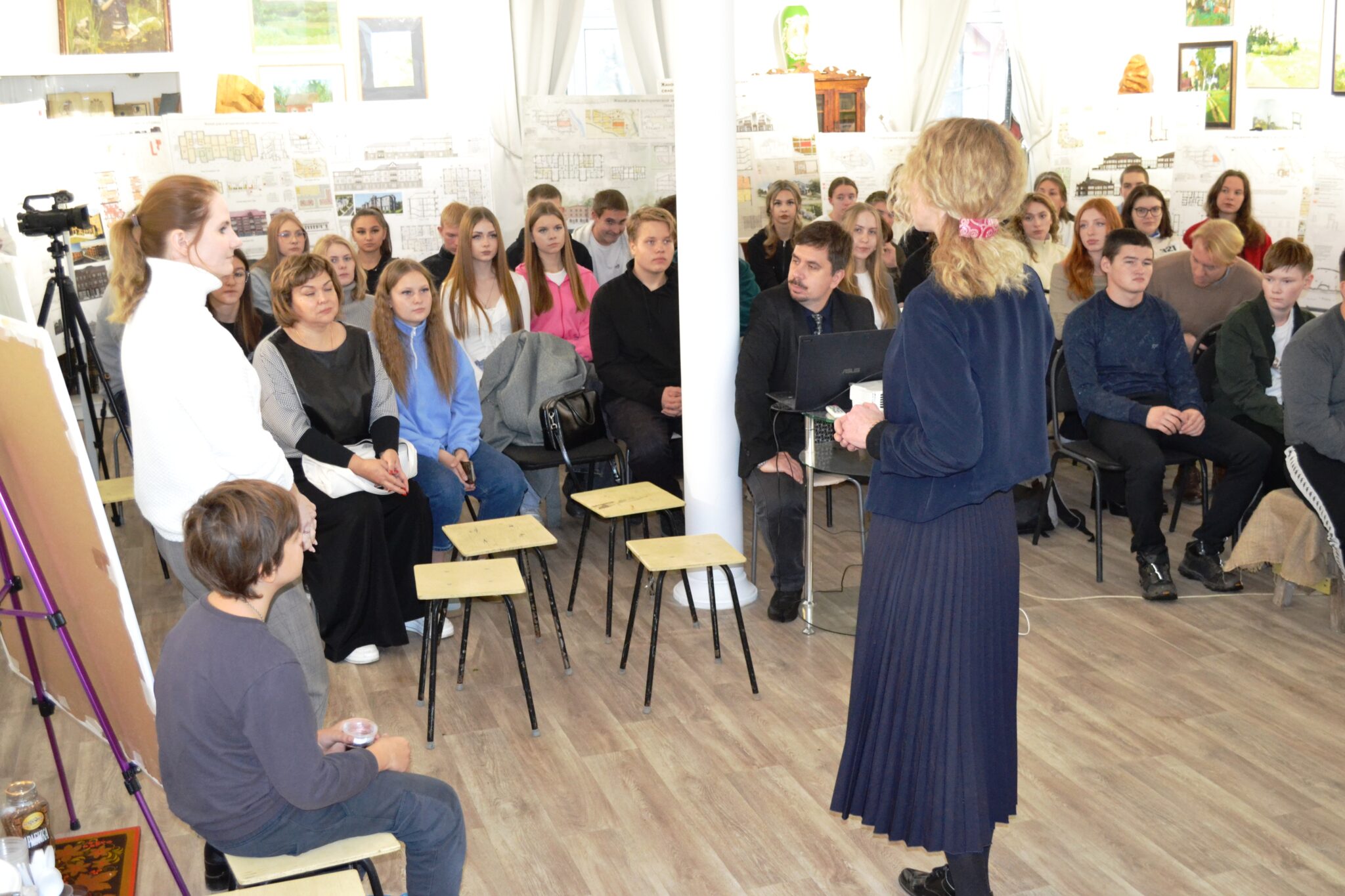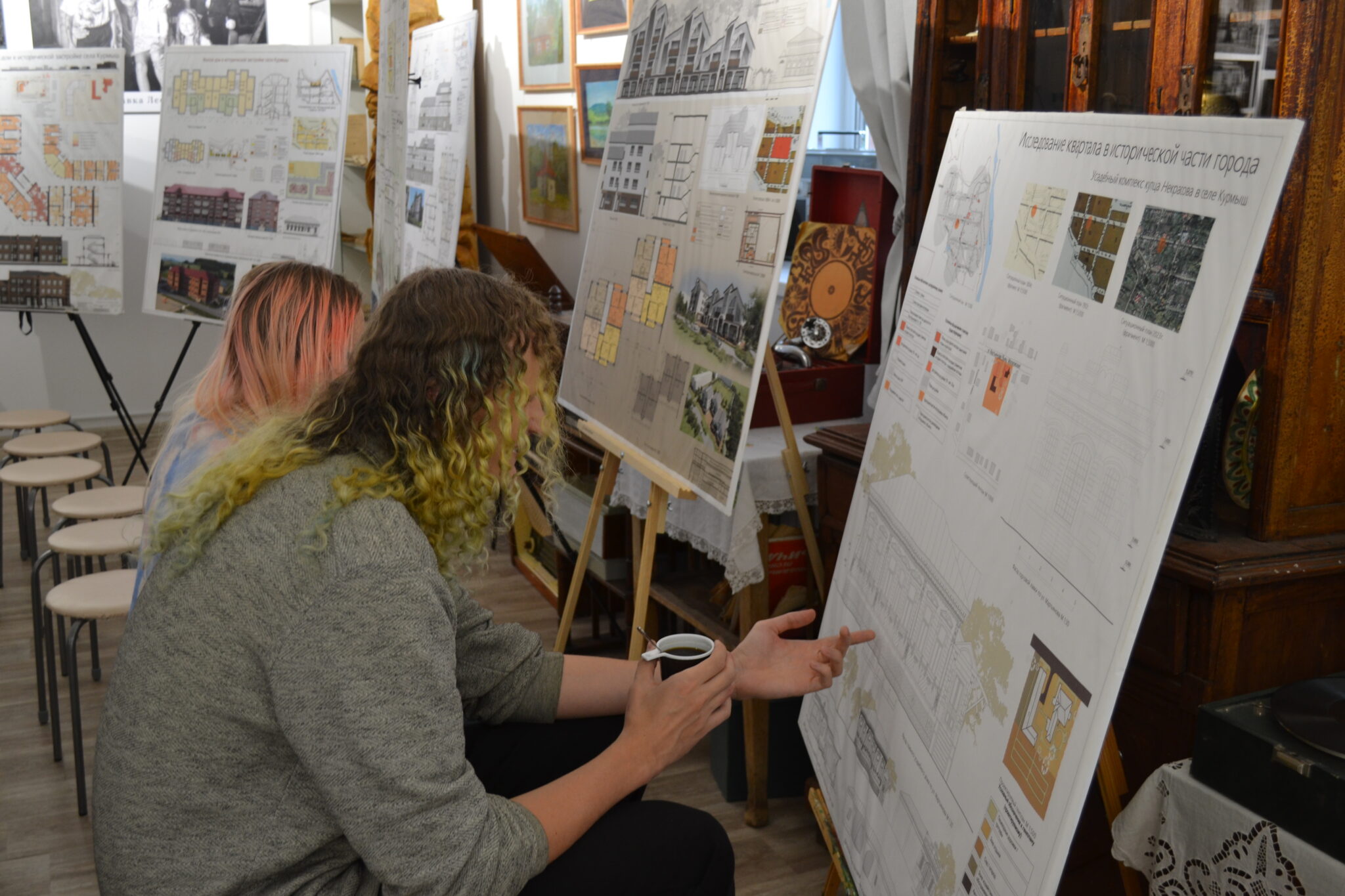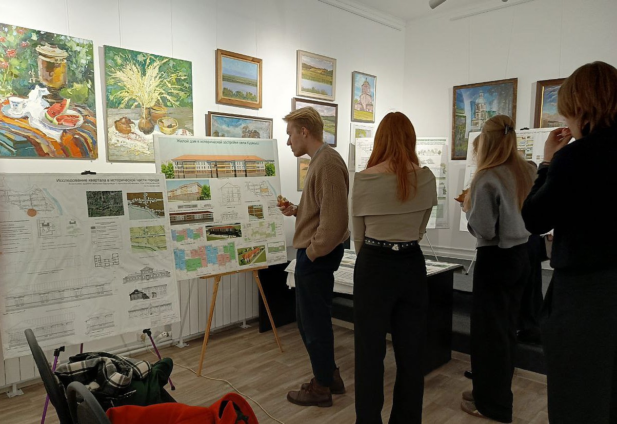 Приехали студенты кафедры истории архитектуры и основ архитектурного проектирования Нижегородского государственного архитектурно-строительного университета, которые на протяжении нескольких лет исследуют архитектурное наследие Курмыша и выполняют проекты по благоустройству территорий и реставрации курмышских ОКН. Поводом для встречи было открытие выставки студенческих проектов в нашем музее, к которому мы приурочили и торжественное открытие макета старинного Курмыша, изготовленного, без преувеличения, гениальным мастером Евгением Палачёвым.