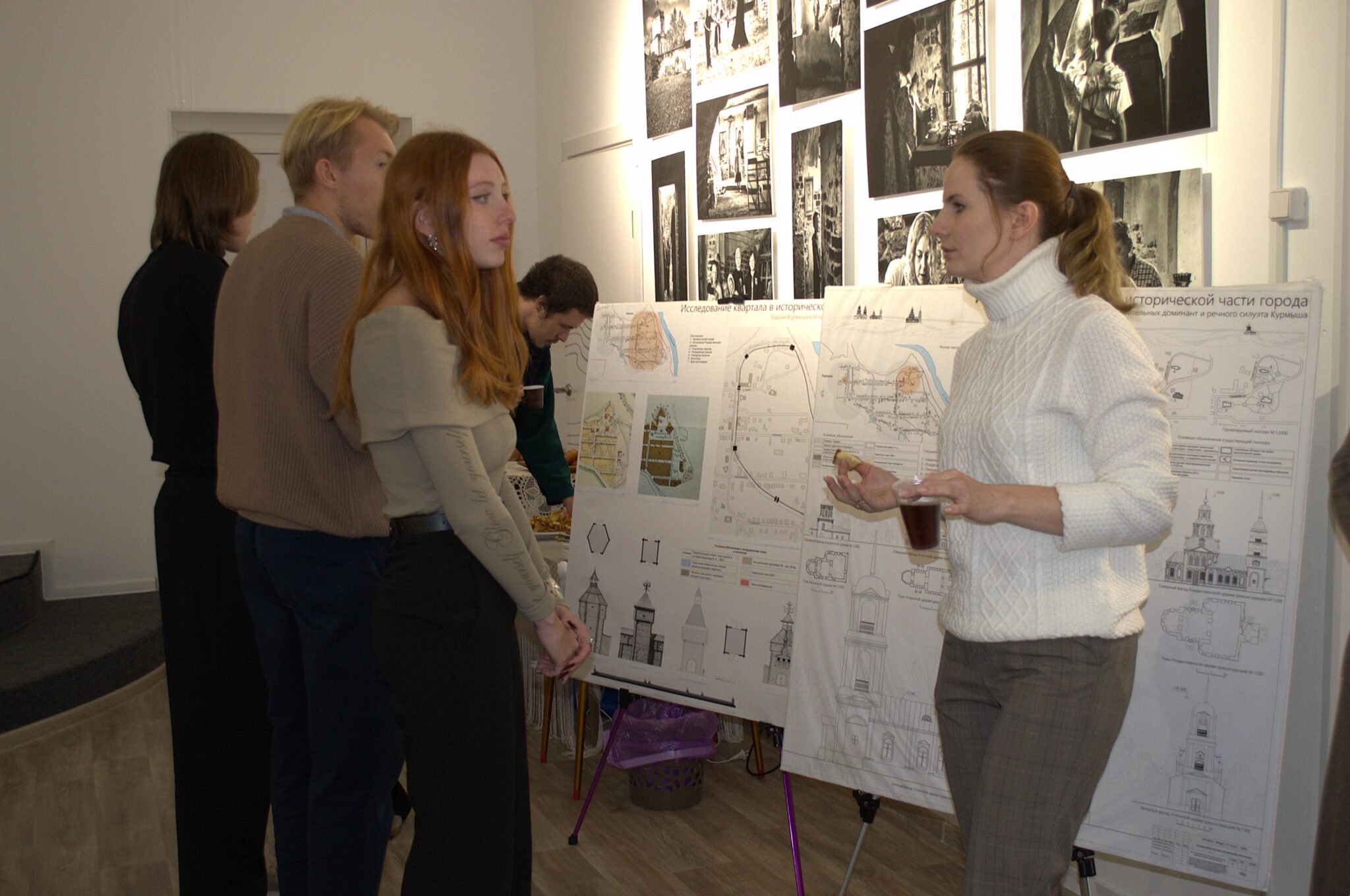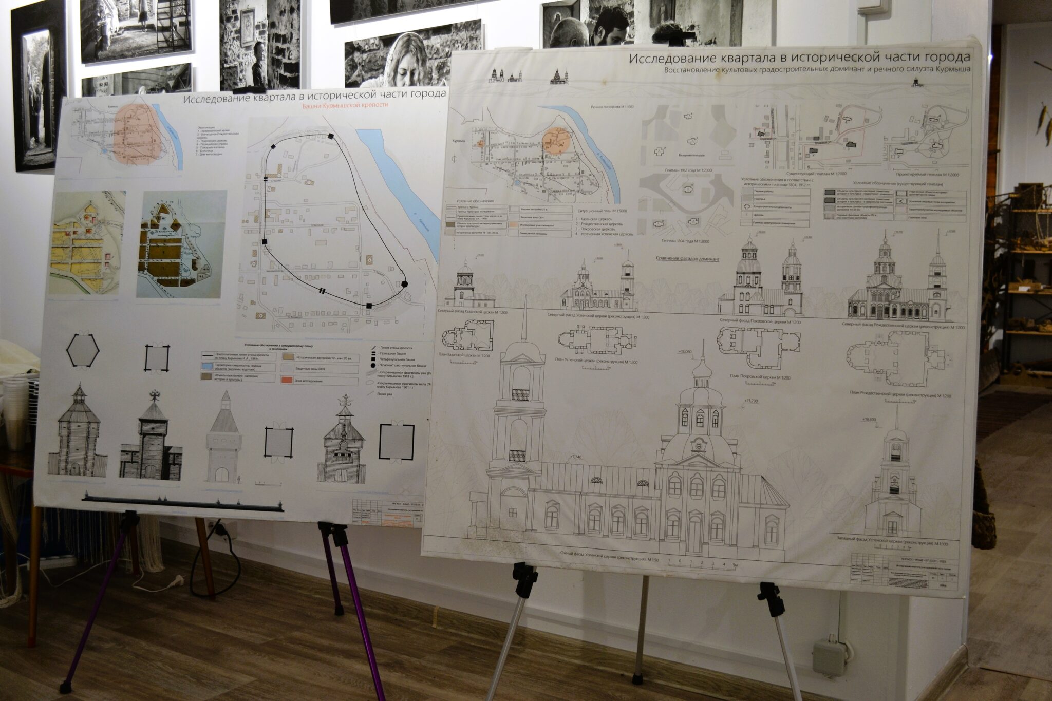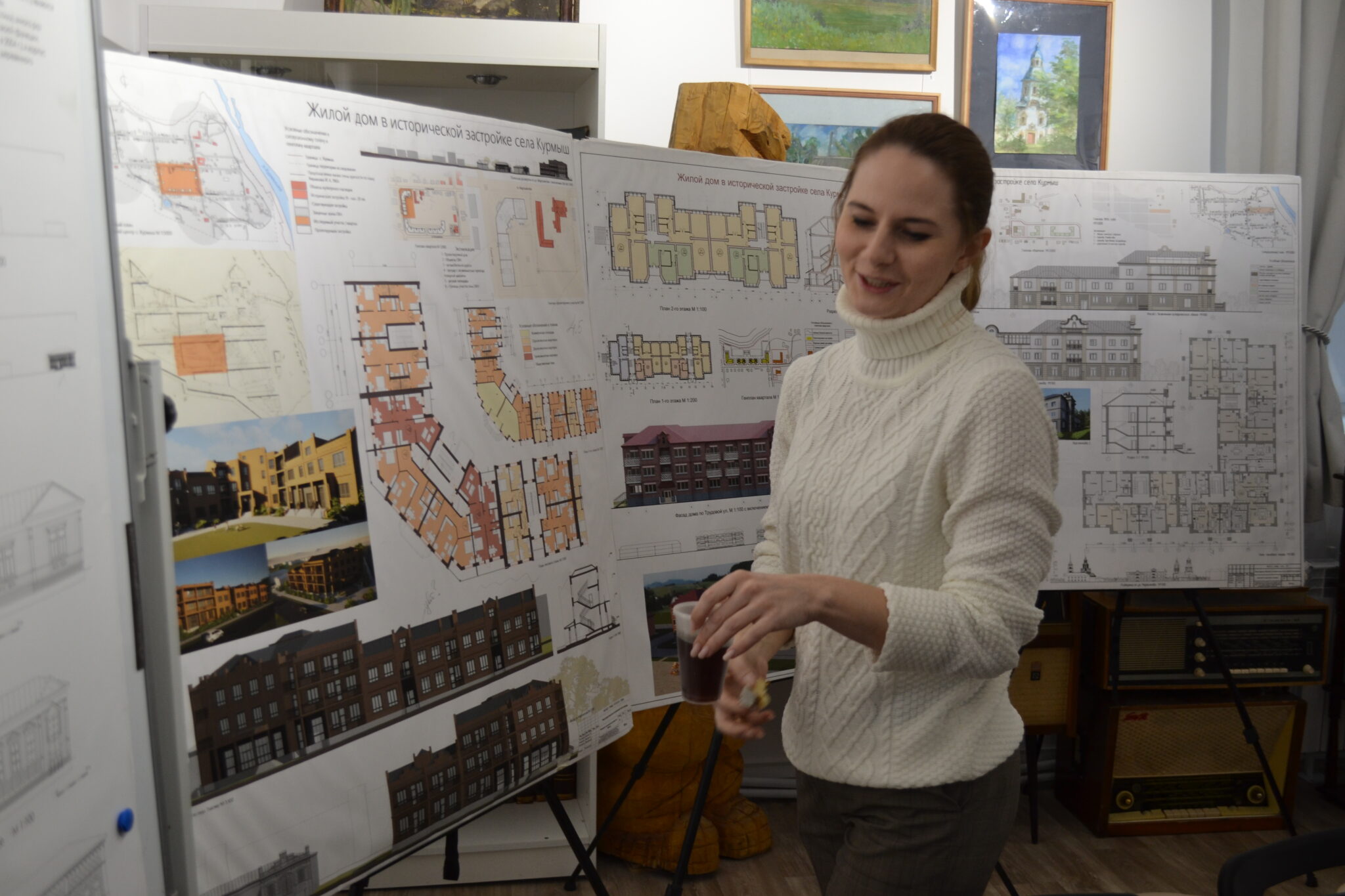 Главные герои торжества – нижегородские студенты – посетили в Курмыше места своих исследований для уточнения и прояснения некоторых исследовательских вопросов, а потом выступили перед собравшимися с докладами о результатах своей работы. Руководитель студенческих проектов – кандидат архитектуры, доцент кафедры истории архитектуры и основ архитектурного проектирования ННГАСУ Дарья Хмелевская – представила проекты ребят и рассказала об итогах многолетних исследований в Курмыше, главным достижением которых стала победа во Всероссийском молодежном конкурсе «Наследие», где студенты завоевали почётное III место за проект «Реставрация ОКН «Комплекс уездной полицейской управы», 1825 г. (село Курмыш, Нижегородская обл.) с приспособлением в духовно-просветительский центр «ДУША КУРМЫША». Кроме того, Институт архитектуры и градостроительства ННГАСУ недавно победил в грантовом конкурсе «Росмолодёжь. Гранты» с проектом «Лаборатория виртуальной реконструкции историко-архитектурного наследия», куда входят и исследования памятников Курмыша.