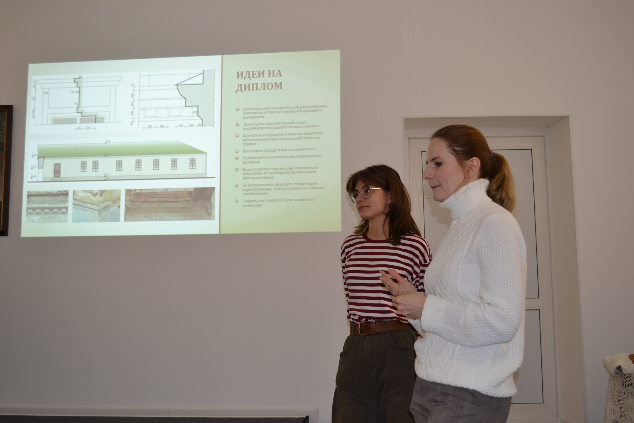 В рамках второй сессии Курмышских краеведческих чтений студенты-пятикурсники Павел Анисимов и Дарина Сопромадзе, которые, к слову, выбрали темы, связанные с восстановлением памятников Курмыша, в качестве дипломных работ, выступили с докладами о своих курмышских исследованиях.