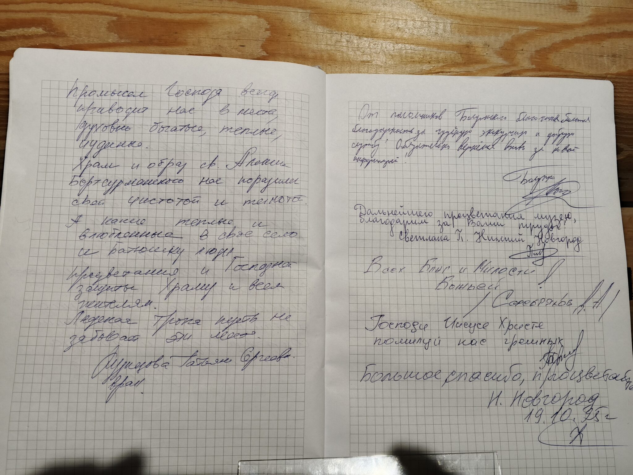 Эксперимент удался, у нас получилось! Несмотря на сложную организацию процесса, удалось насладиться общением с нижегородскими гостями, которые не только задавали вопросы, но и делились своими рассказами о чудесной помощи святого Алексия. Оказалось, что многие из них давно почитают праведника, следят за нашей историей архивных открытий и создания музея.