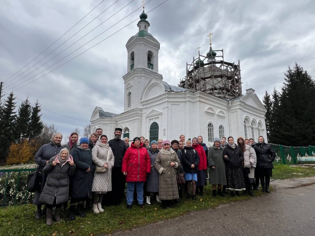 День начался с Божественной литургии в Успенском храме и молебна у мощей бортсурманского старца. После богослужения гости разделились на три группы, и Александрина Владимировна Вигилянская вместе с Еленой Павловной Смирновой, как это уже бывало, принимали паломников по очереди – в три приёма удалось и провести уличные экскурсии у храма, и познакомить гостей с экспозицией музея святого Алексия.