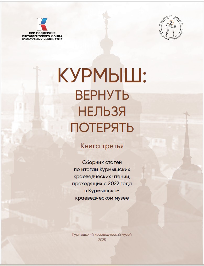 «Курмыш: вернуть нельзя потерять» – третий сборник, составленный по итогам Курмышских краеведческих чтений, которые с 2022 года проходят в Курмышском краеведческом музее.