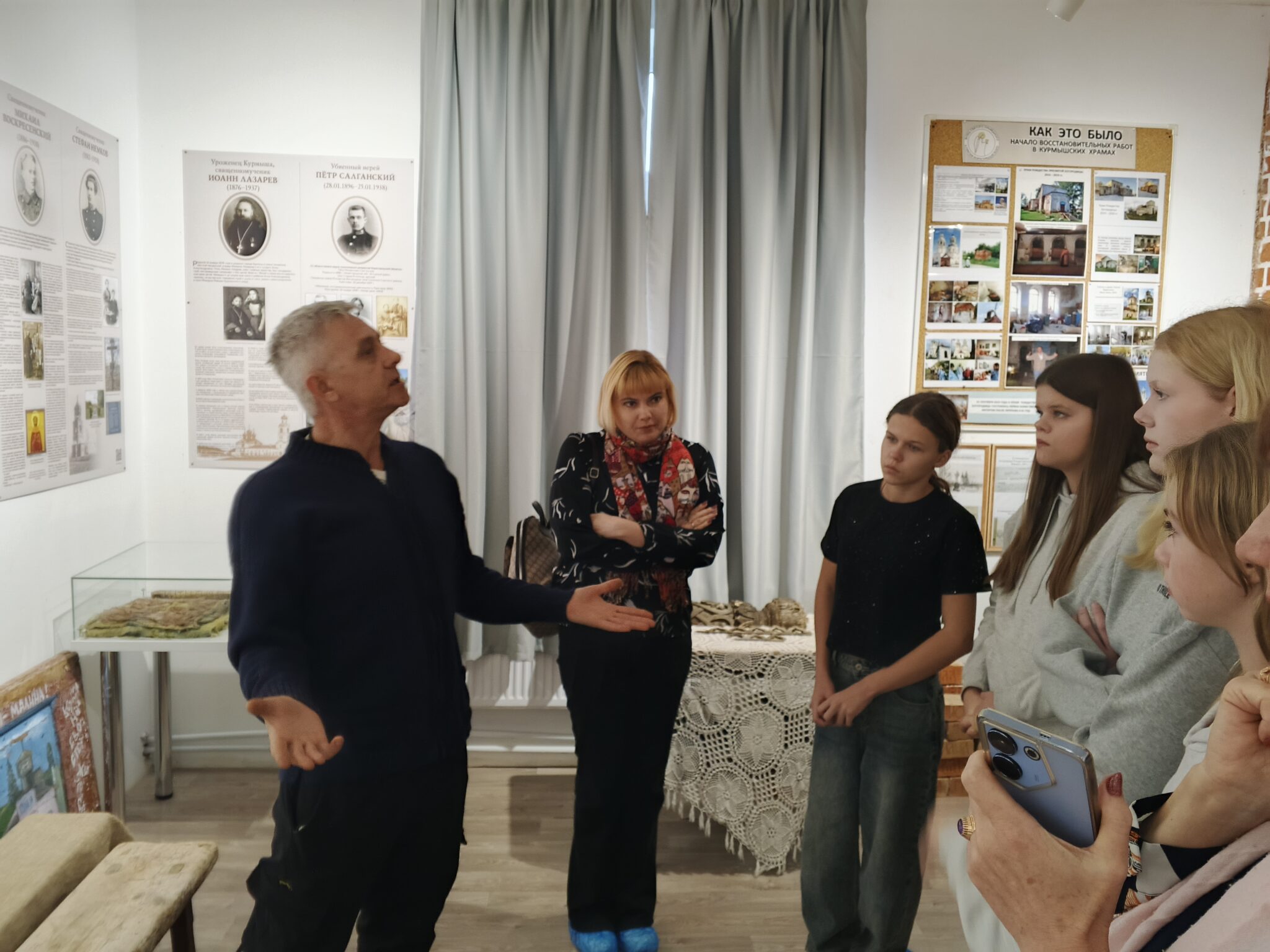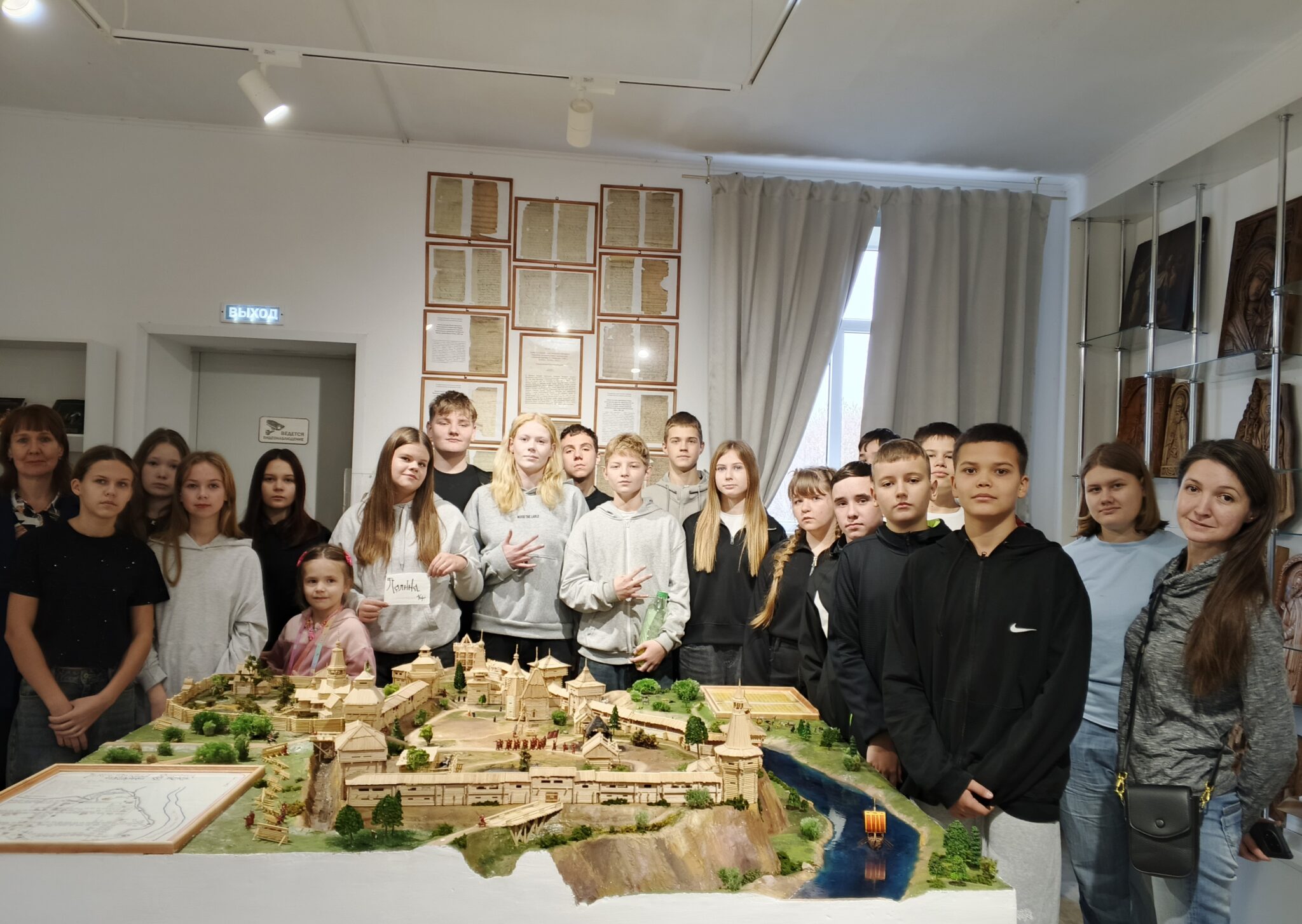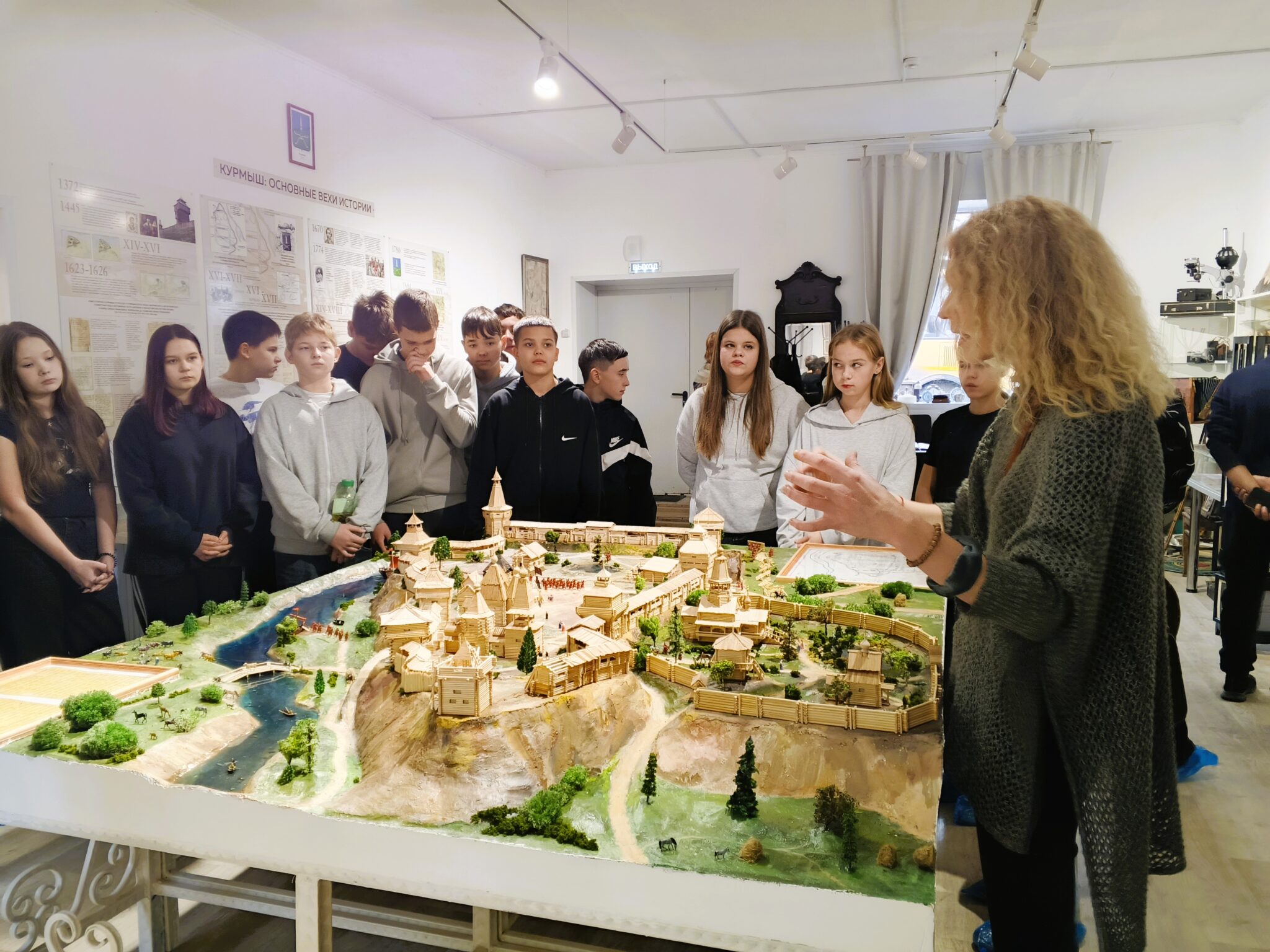 Сегодня в Курмышском краеведческом музее побывали семиклассники из Пильнинской школы № 2 им. А. С. Пушкина. Поговорили о главных событиях курмышской истории, познакомились с макетом старинного Курмыша, побывали на выставке студенческих проектов по реконструкции курмышских памятников культурного наследия, открытой при поддержке Президентского фонда культурных инициатив,  исследовали все закоулки музея, а потом ещё и вместе проехались по улицам села, познакомившись с историей старинных зданий и памятных мест.