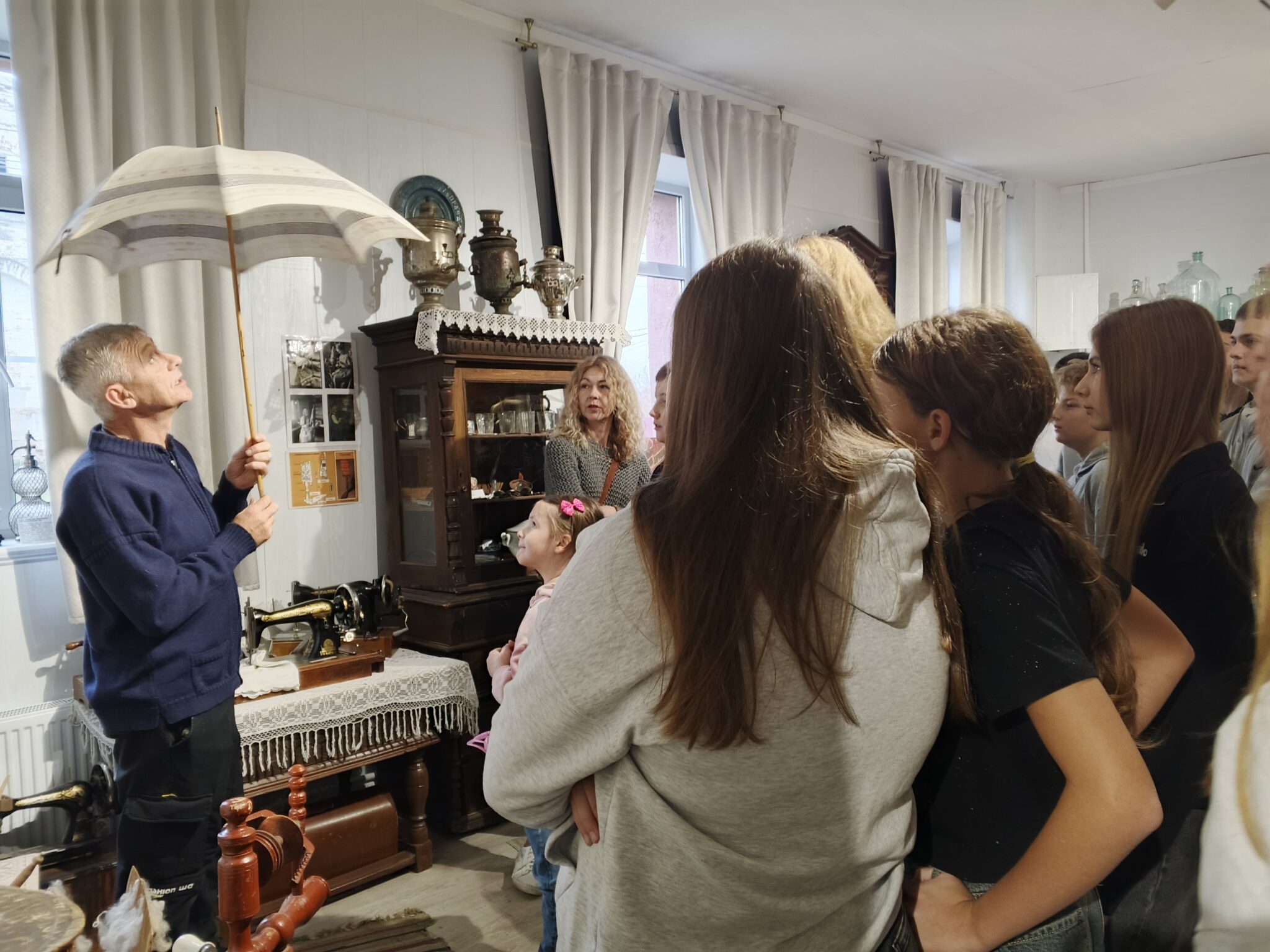 Тёплый приём создателей музея Александрины Владимировны и Евгения Александровича. Наличие нескольких залов и экспонатов, старинные фотографии и иконы, старинные часы и зеркала.