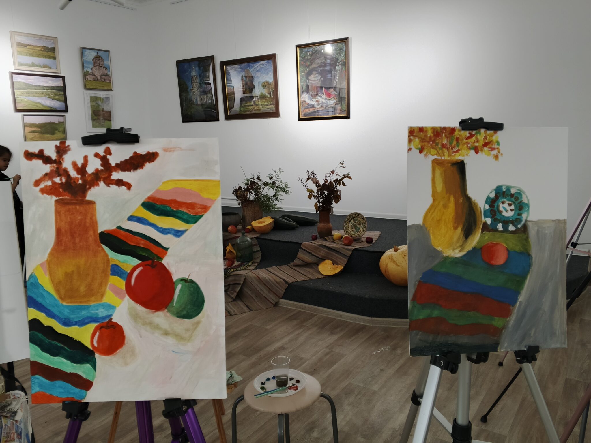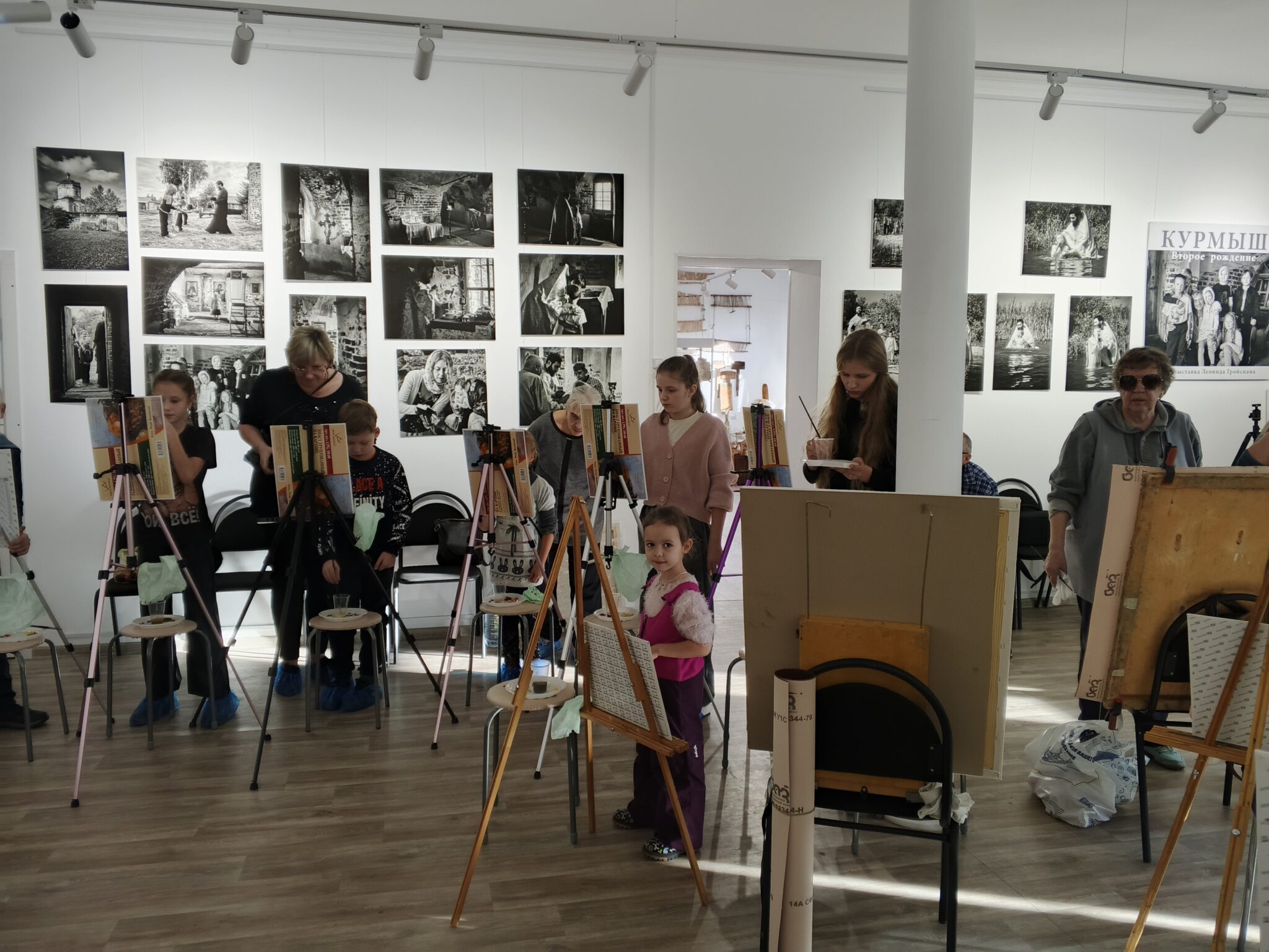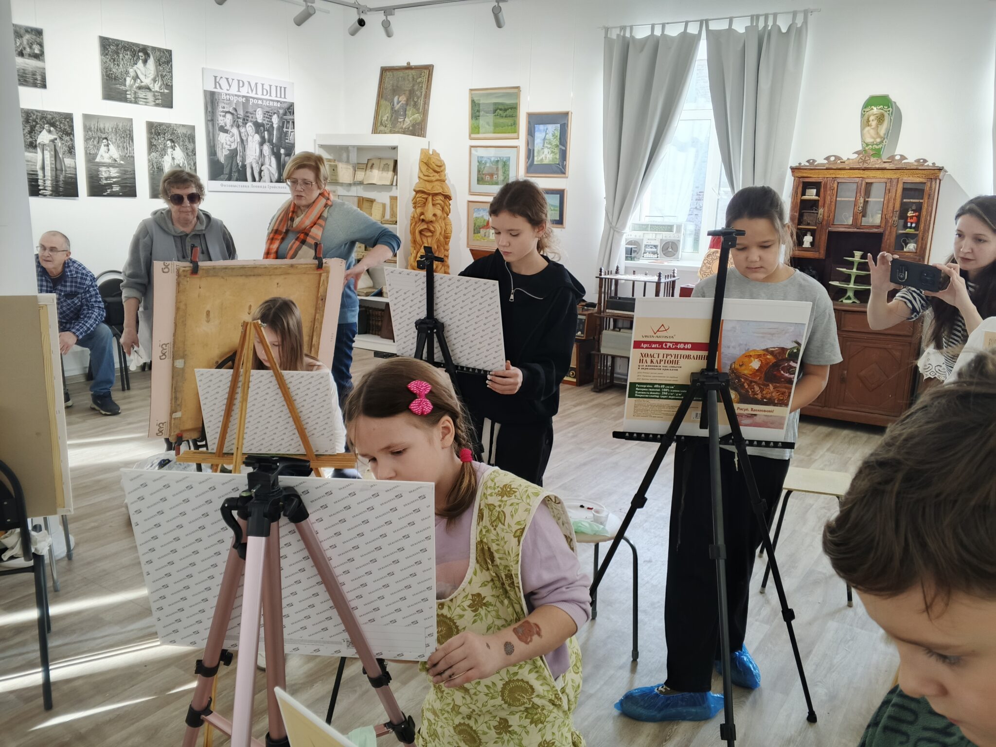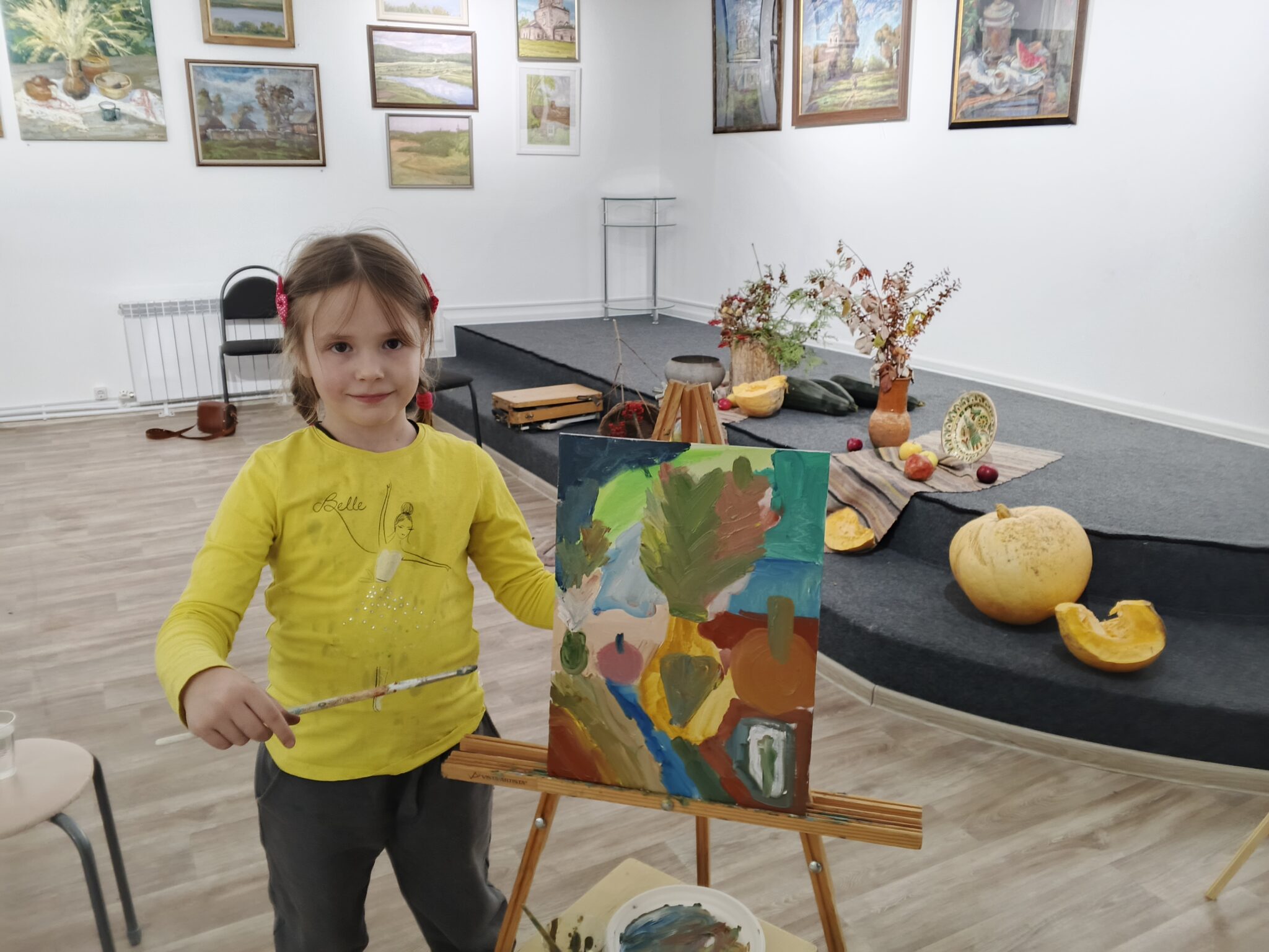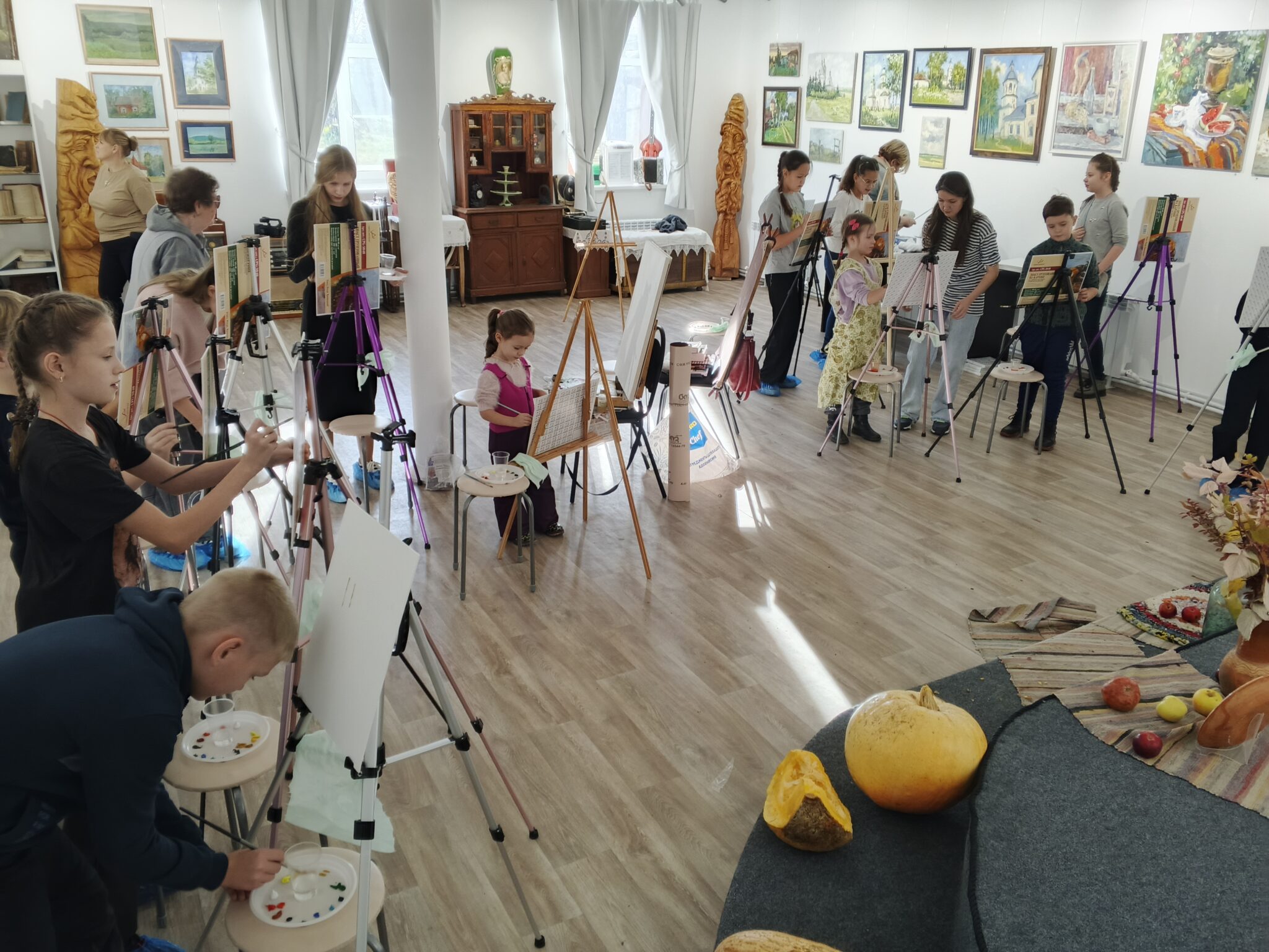 Художницы провели с курмышскими ребятишками и гостями из города Сеченово, которые как раз в это время заглянули в музей, осенний мастер-класс. Писали маслом натюрморт с тыквами, гранатами и прочей красотой.
