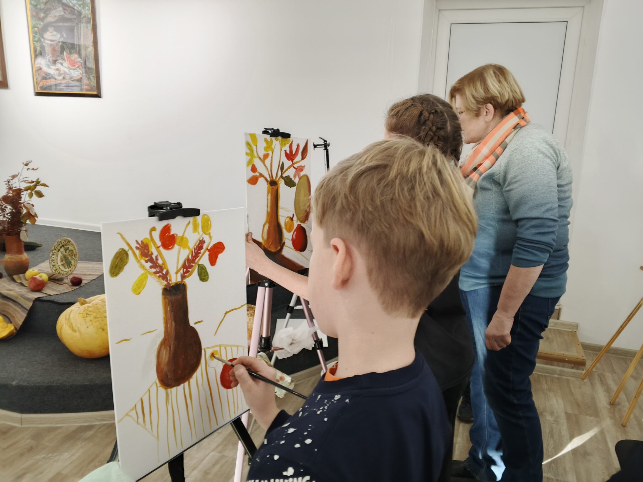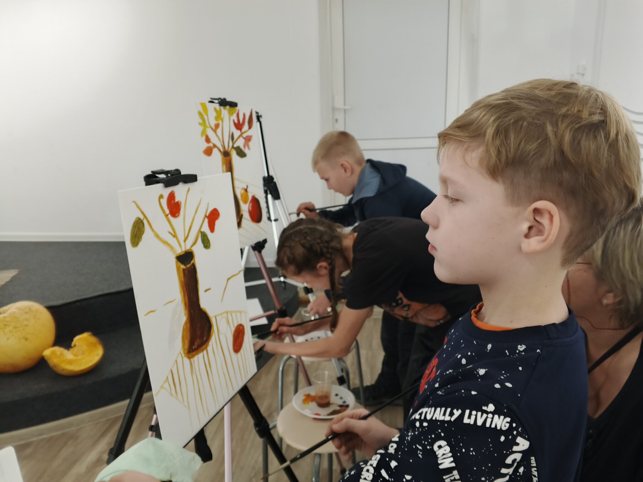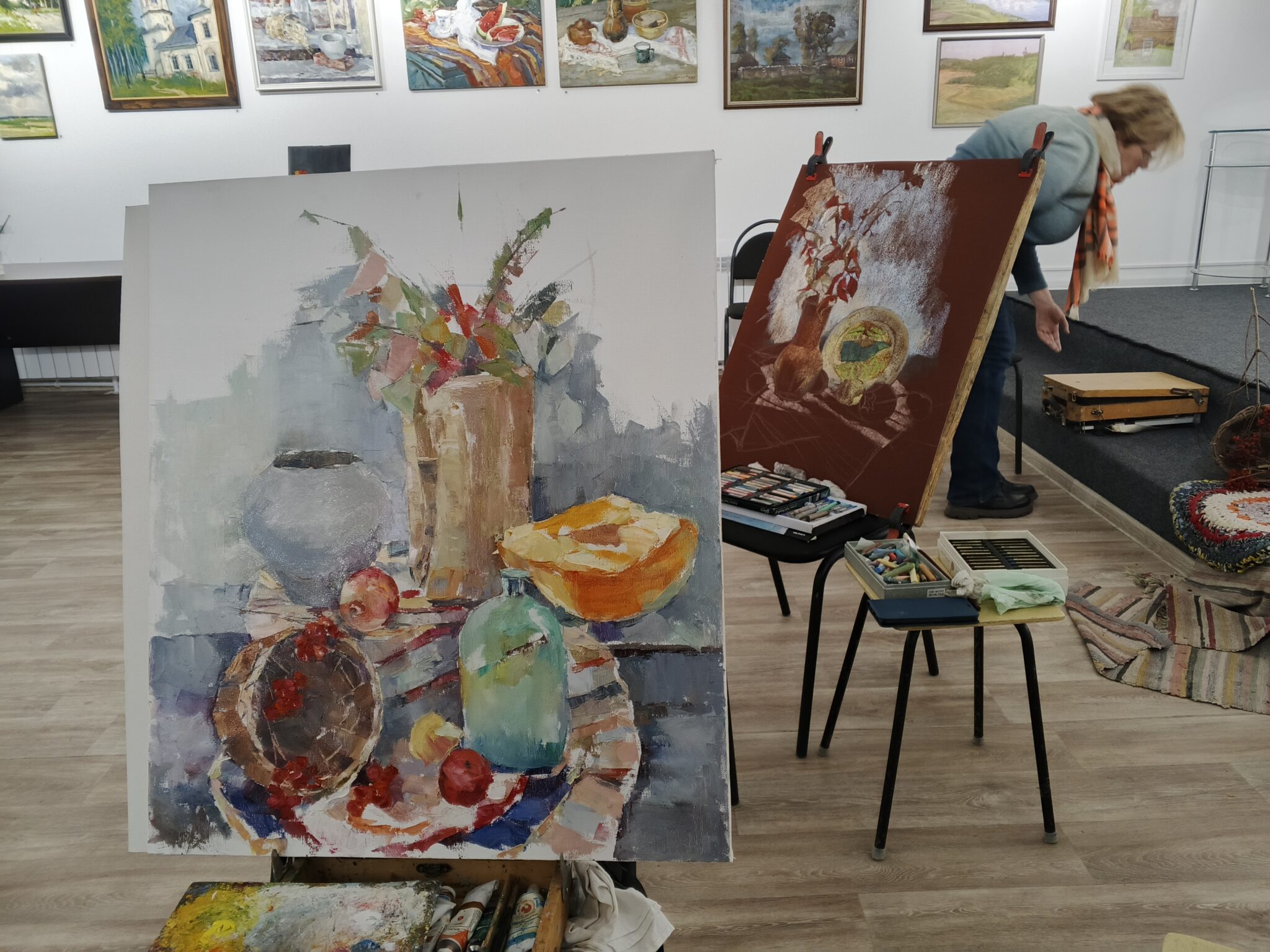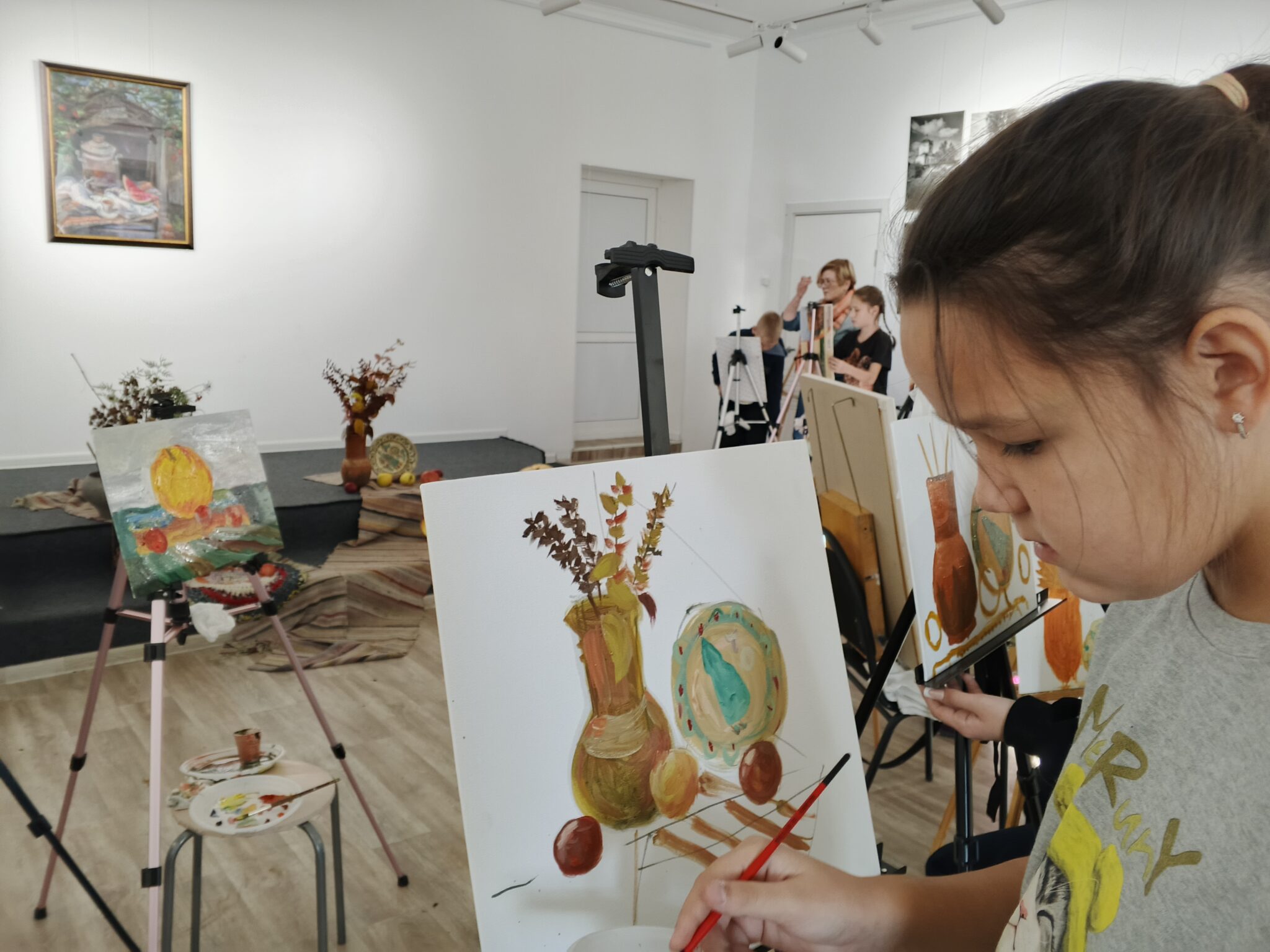Художницы провели с курмышскими ребятишками и гостями из города Сеченово, которые как раз в это время заглянули в музей, осенний мастер-класс. Писали маслом натюрморт с тыквами, гранатами и прочей красотой.