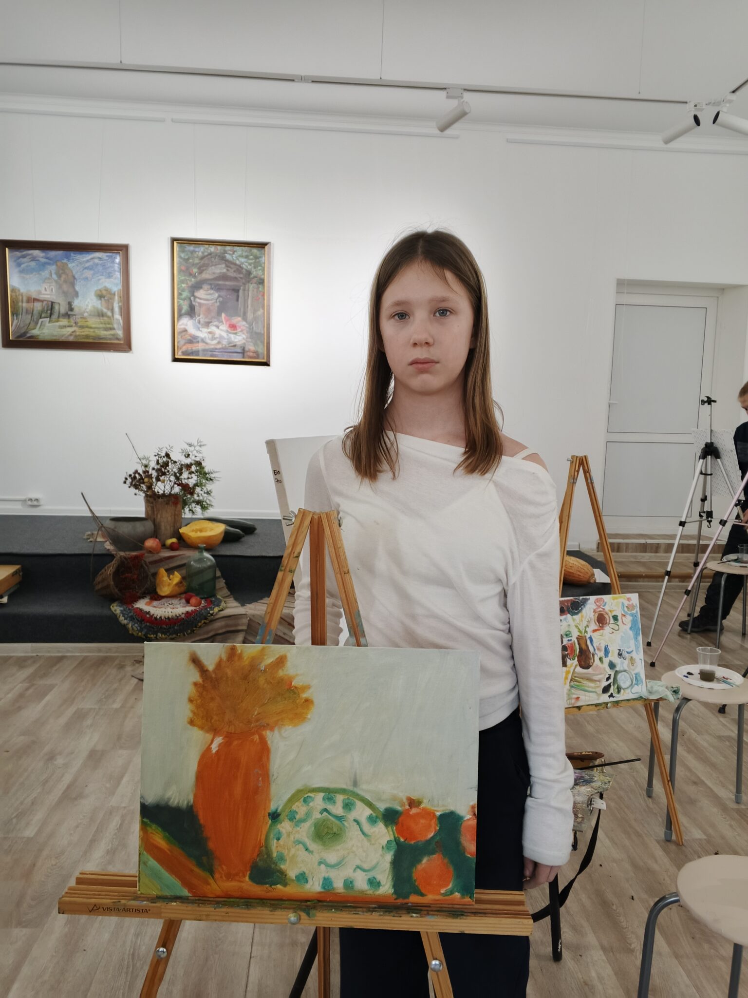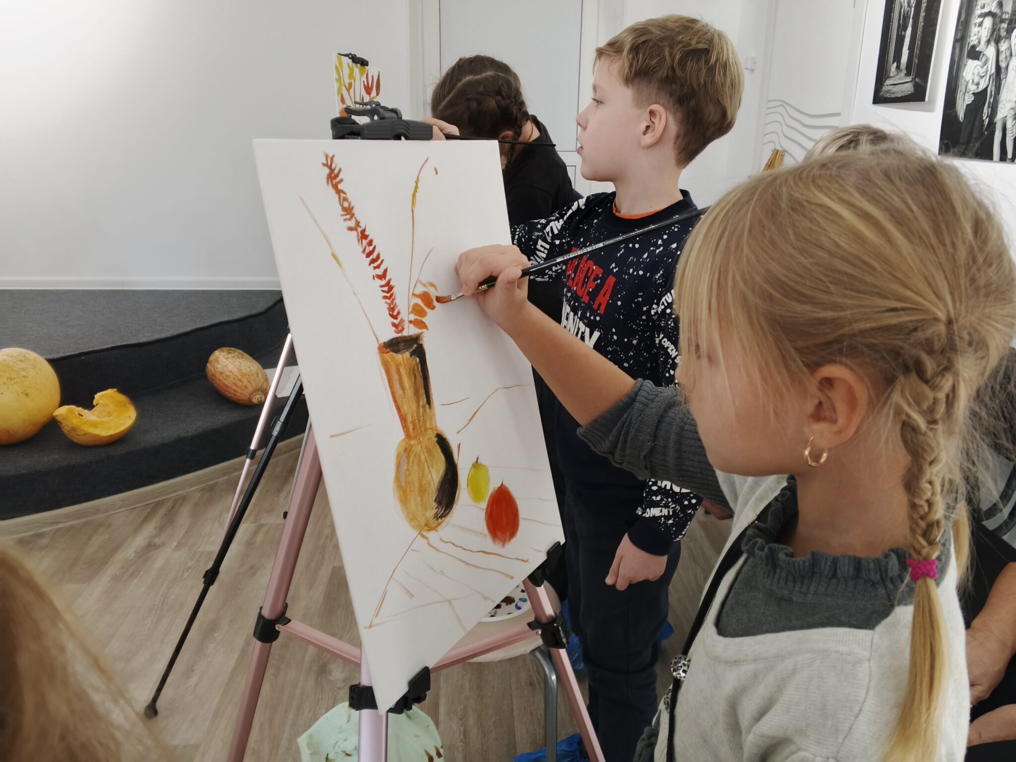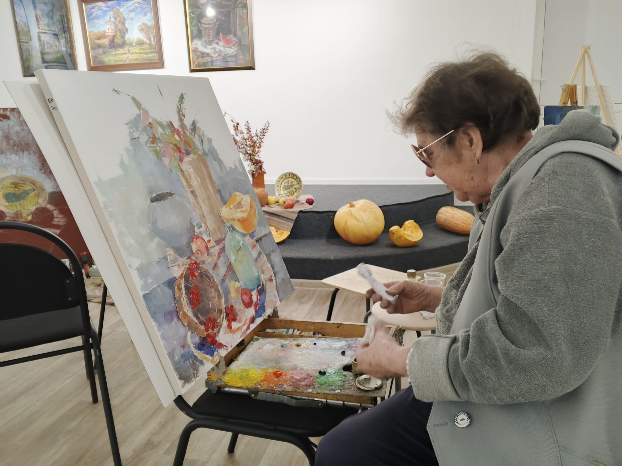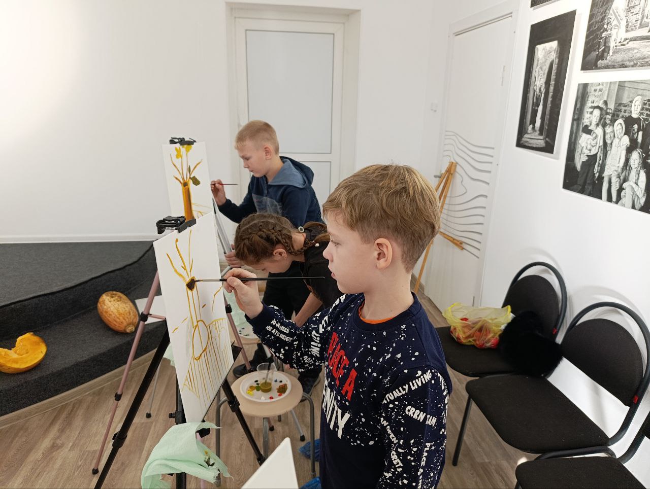 Художницы провели с курмышскими ребятишками и гостями из города Сеченово, которые как раз в это время заглянули в музей, осенний мастер-класс. Писали маслом натюрморт с тыквами, гранатами и прочей красотой.