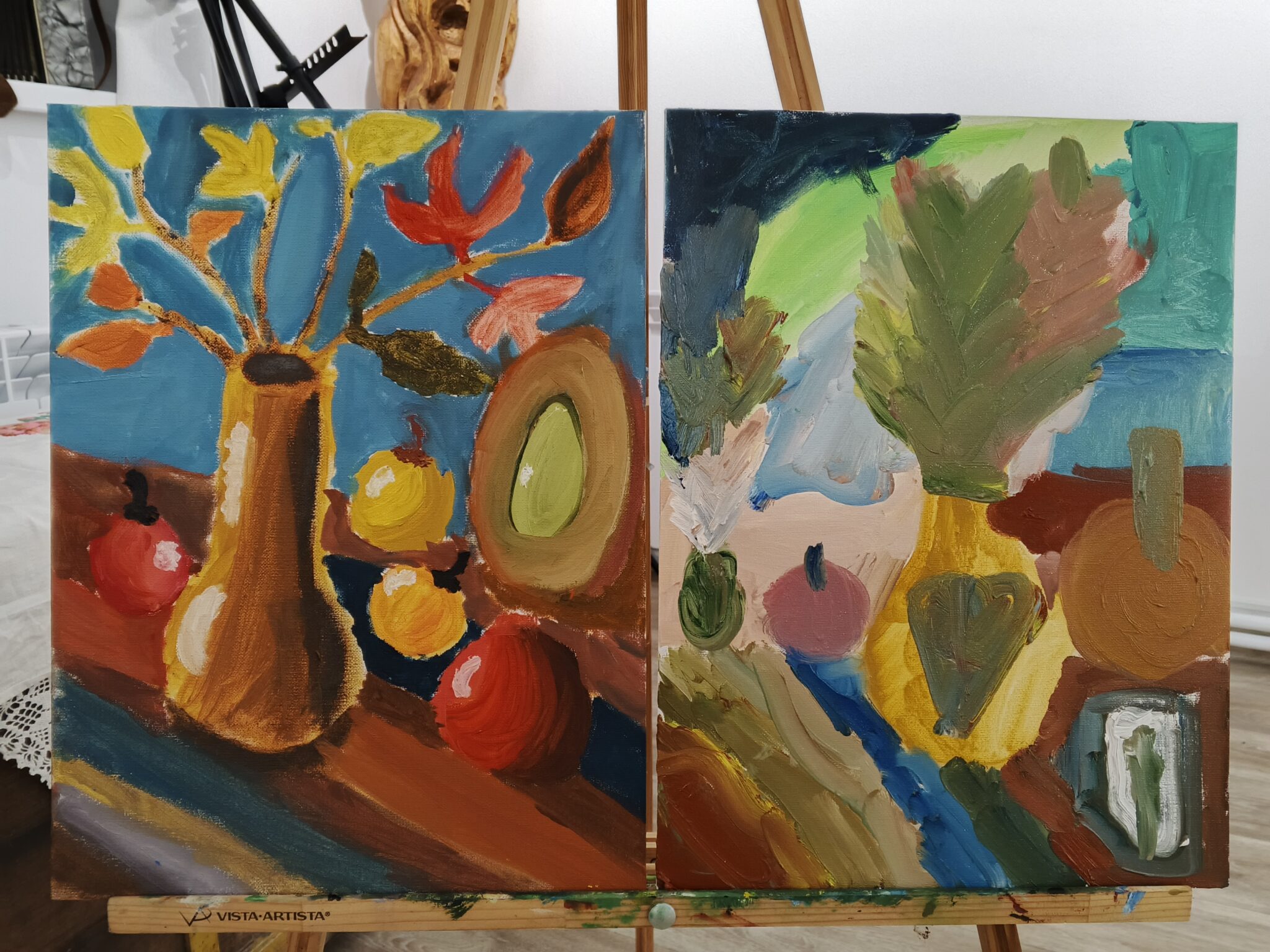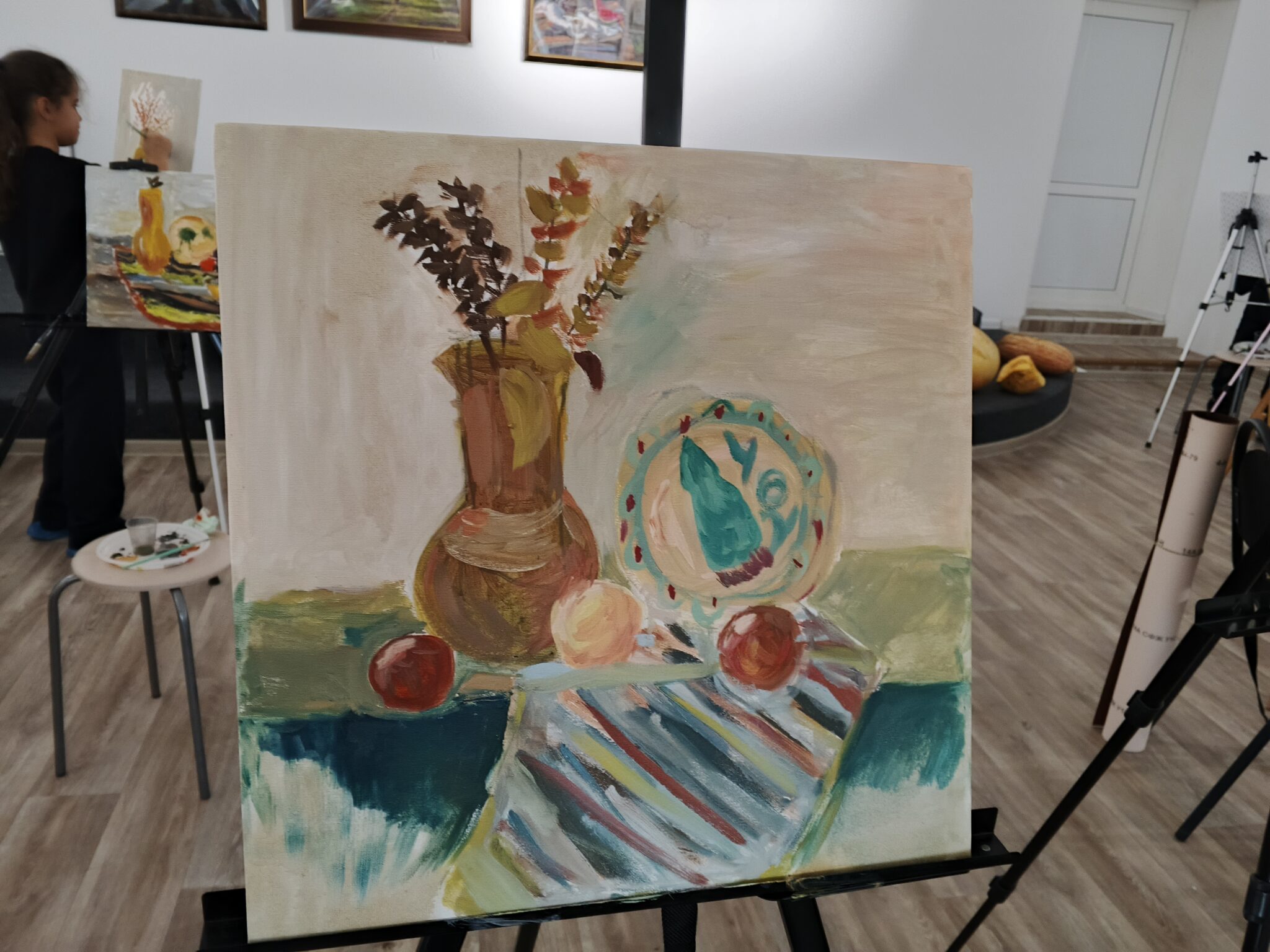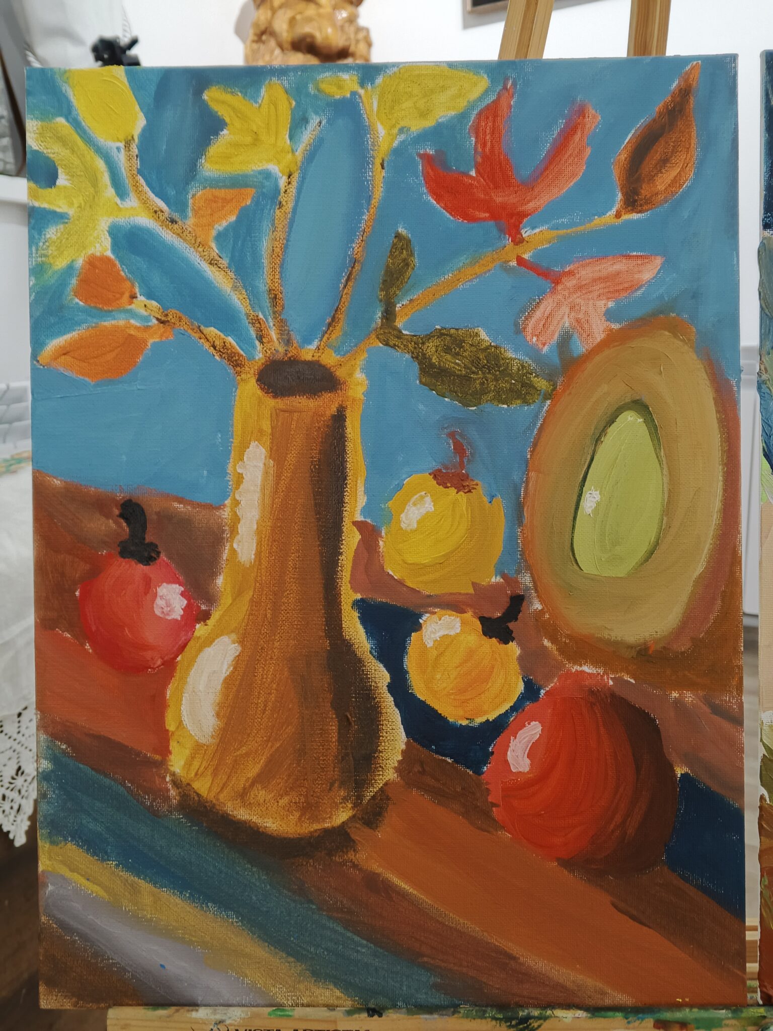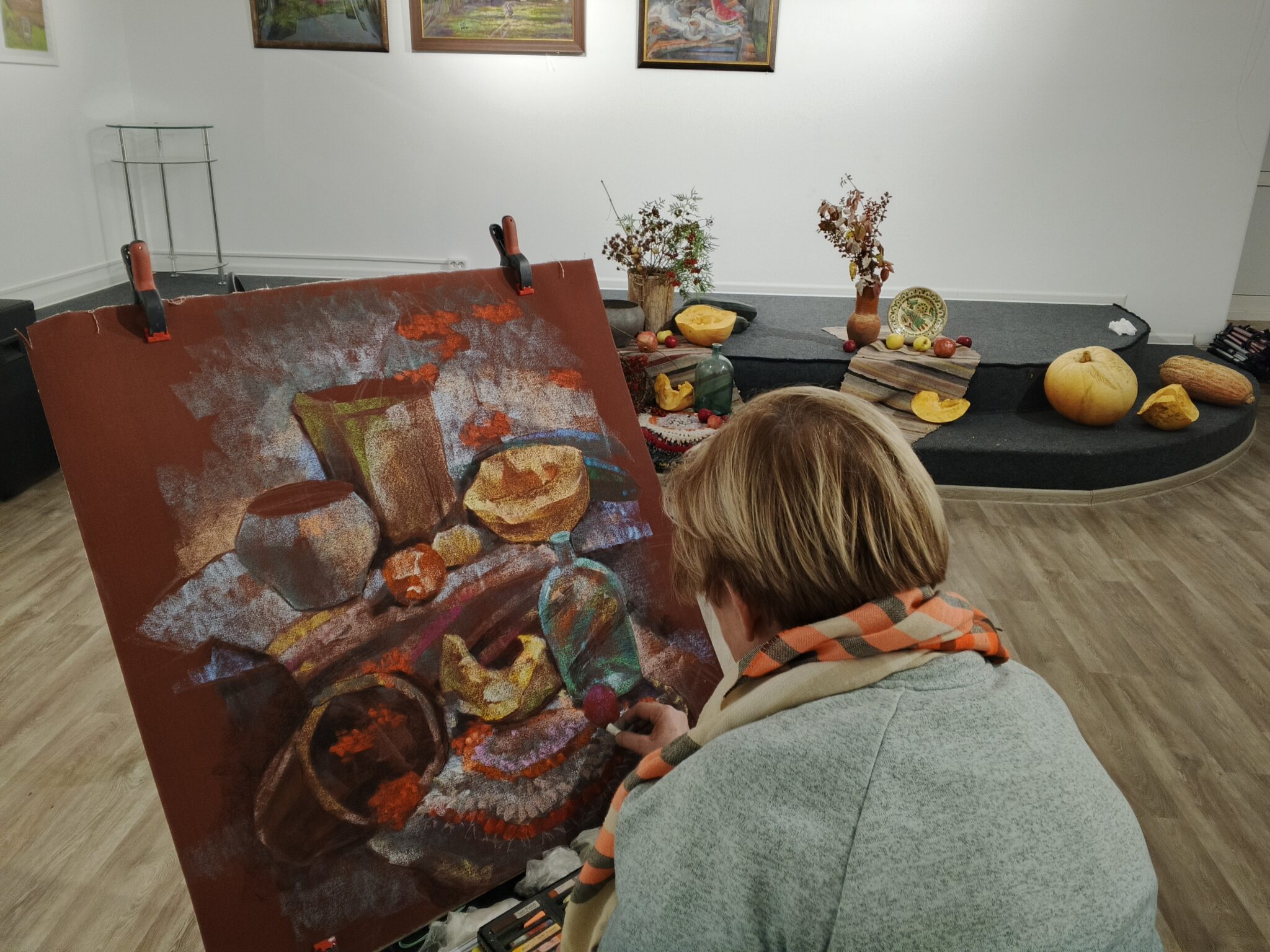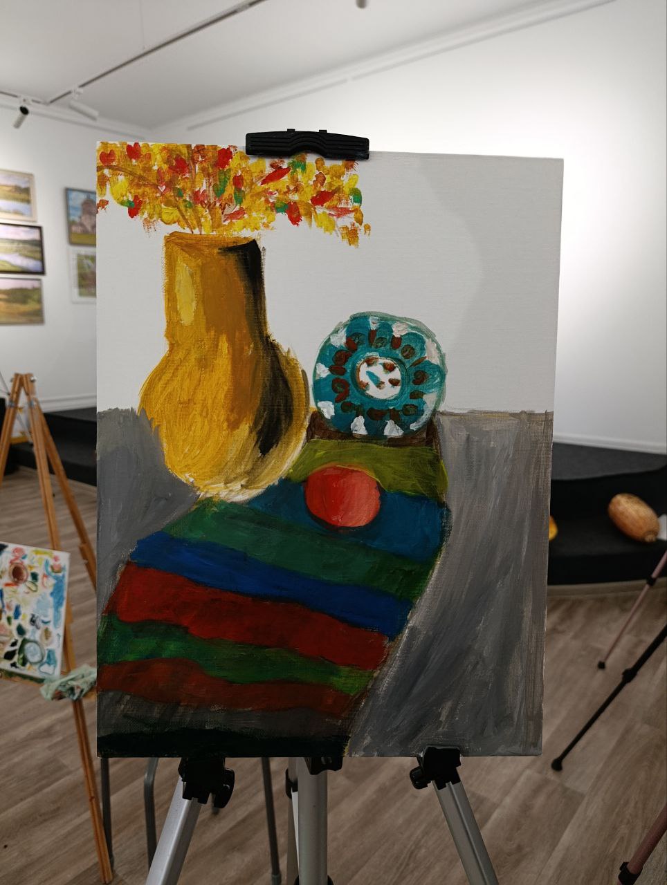 Художницы провели с курмышскими ребятишками и гостями из города Сеченово, которые как раз в это время заглянули в музей, осенний мастер-класс. Писали маслом натюрморт с тыквами, гранатами и прочей красотой.