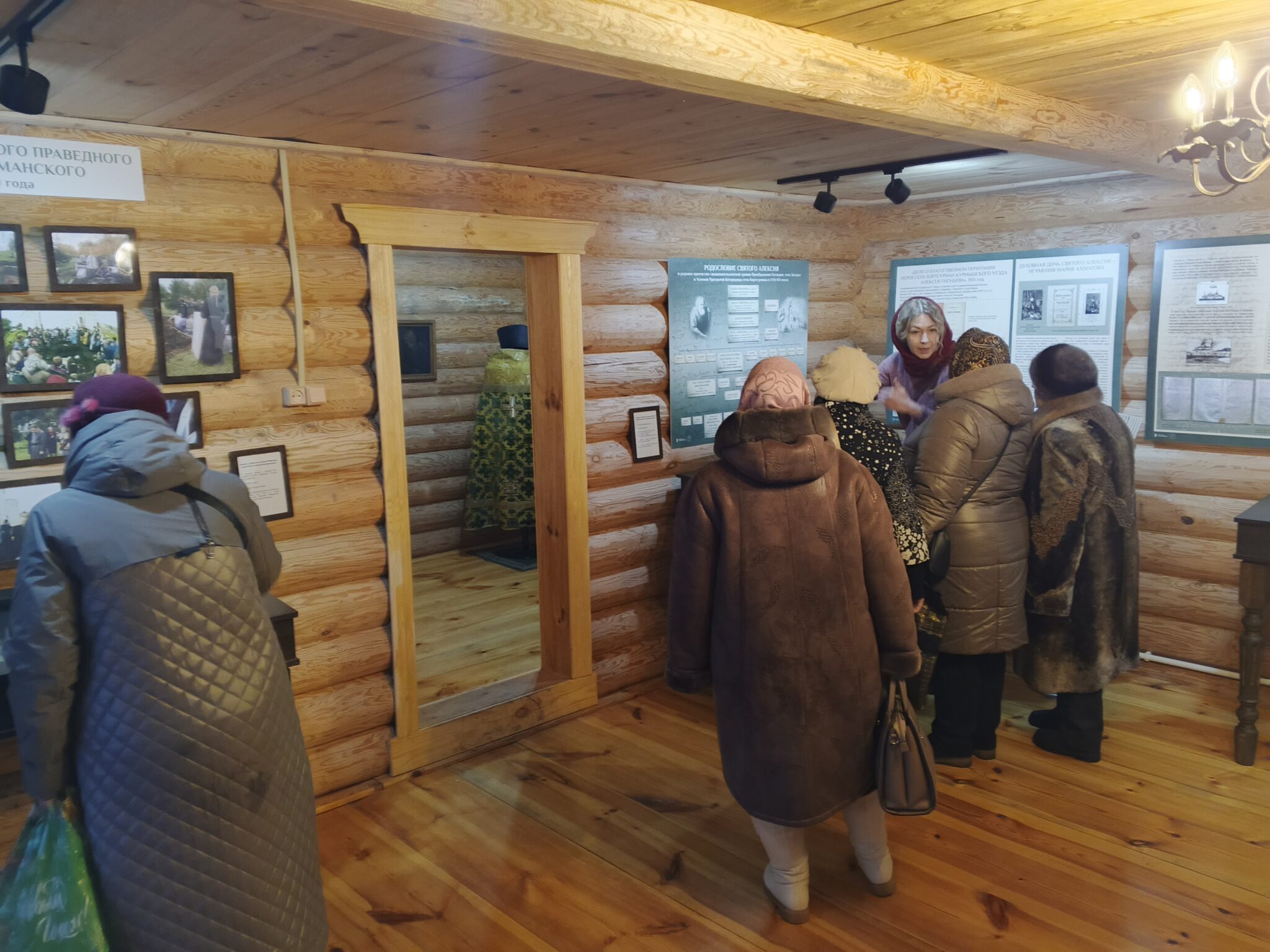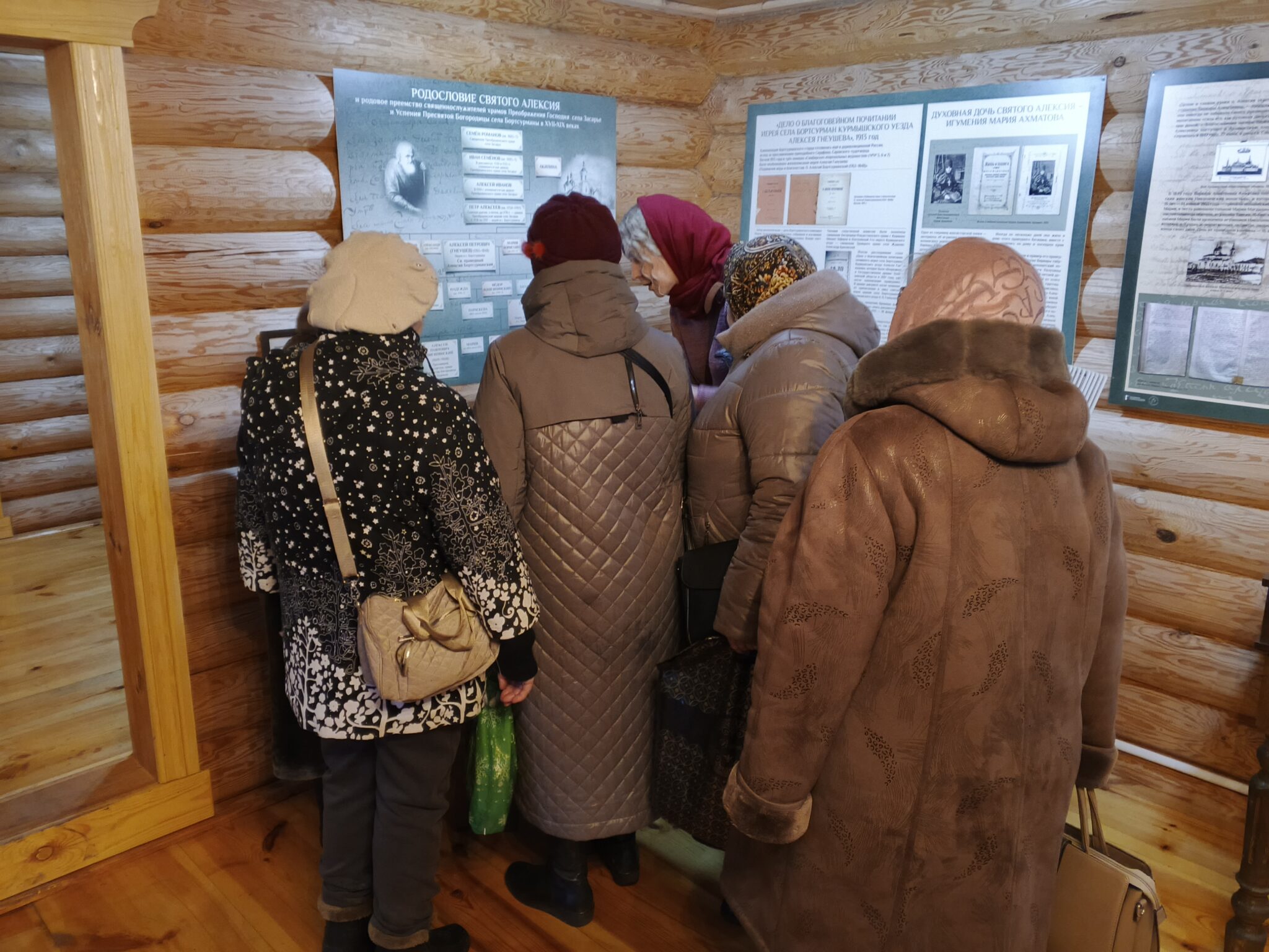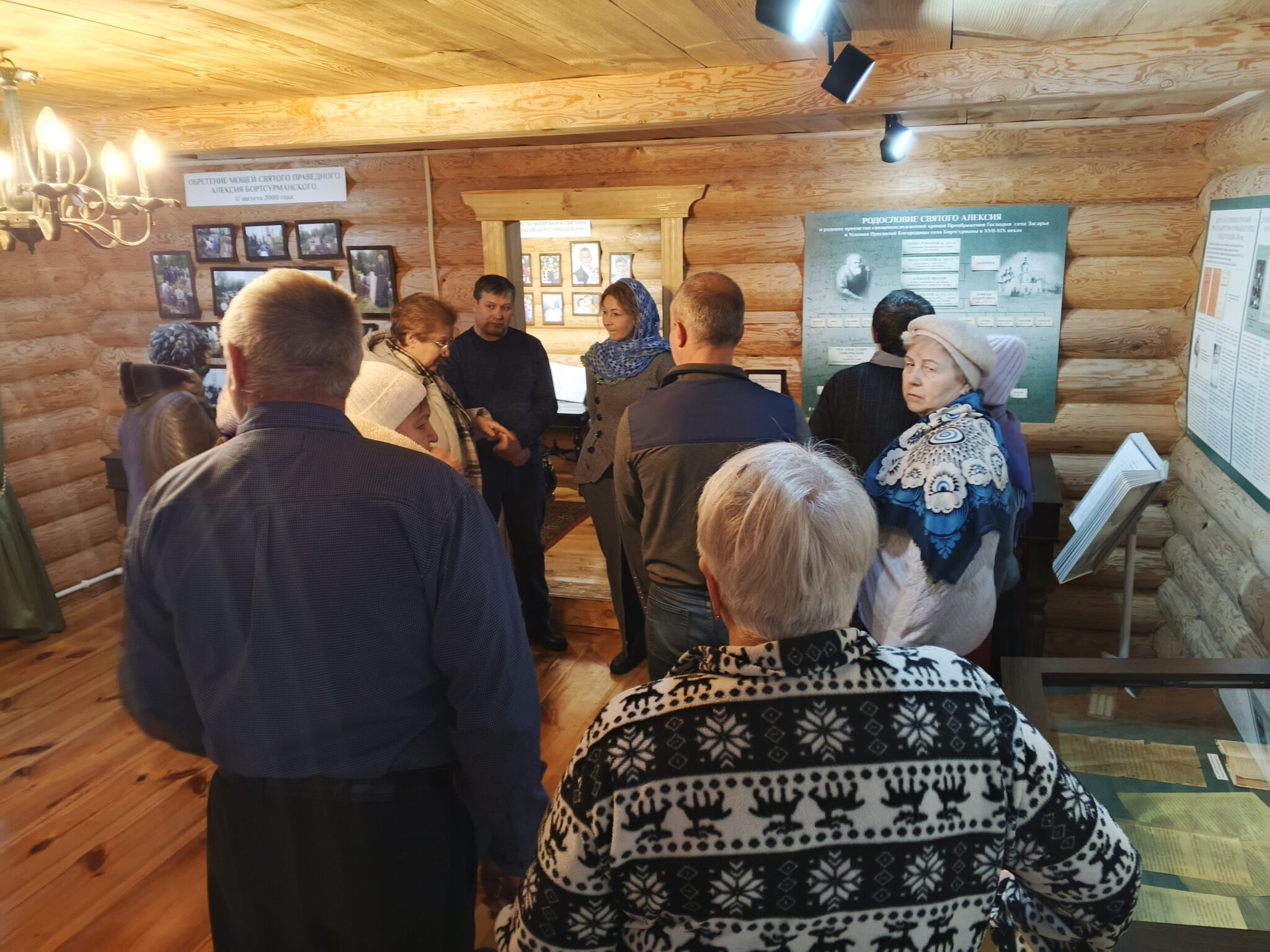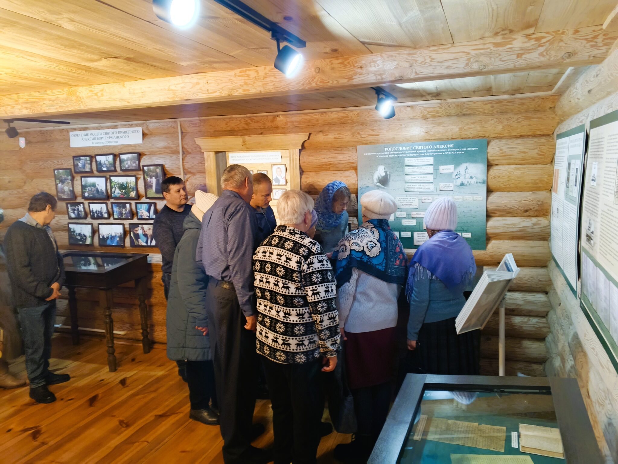 Гости побывали в Успенском храме, приложились к мощам святого праведного Алексия Бортсурманского, а потом посетили место первоначального захоронения старца и музей святого, где познакомились с его житием, генеалогией и чудотворениями, побывали в келье праведника, узнали об истории его прославления и о судьбах других священнослужителей бортсурманского храма.