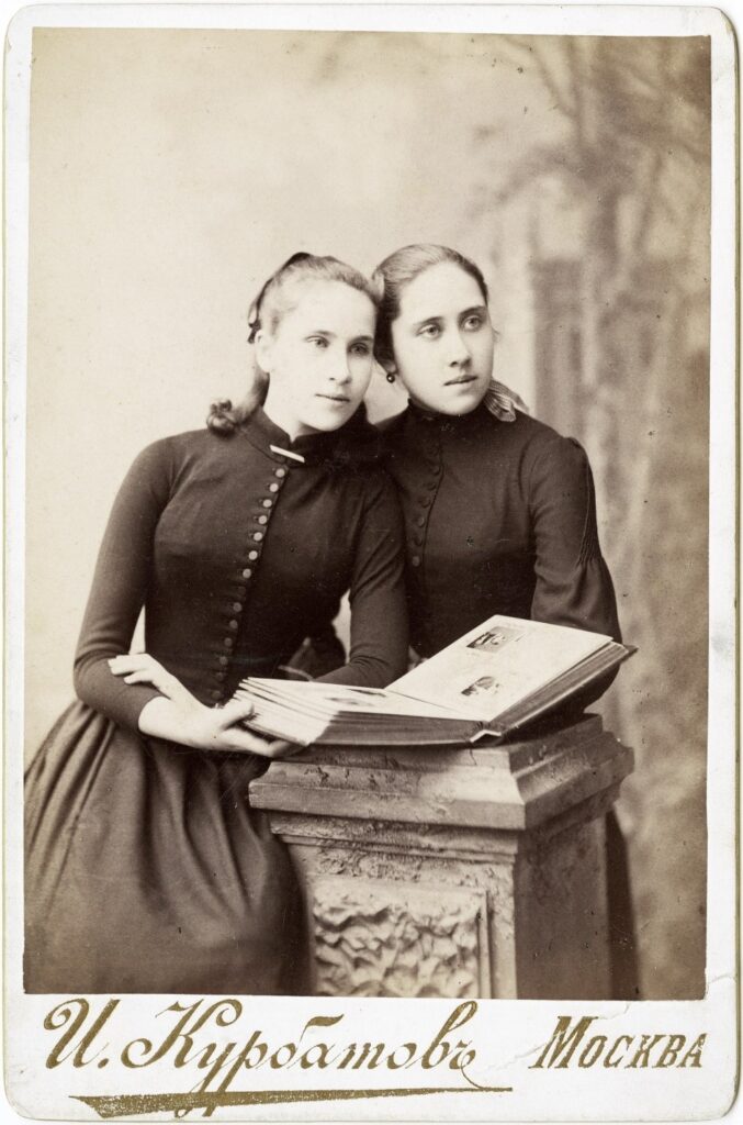 ПАЗУХИНЫ Мария и Александра. Старшие дочери помещика села Бортсурманы Александра Дмитриевича Пазухина. Фото И. Курбатова, Москва, около 1890 г.