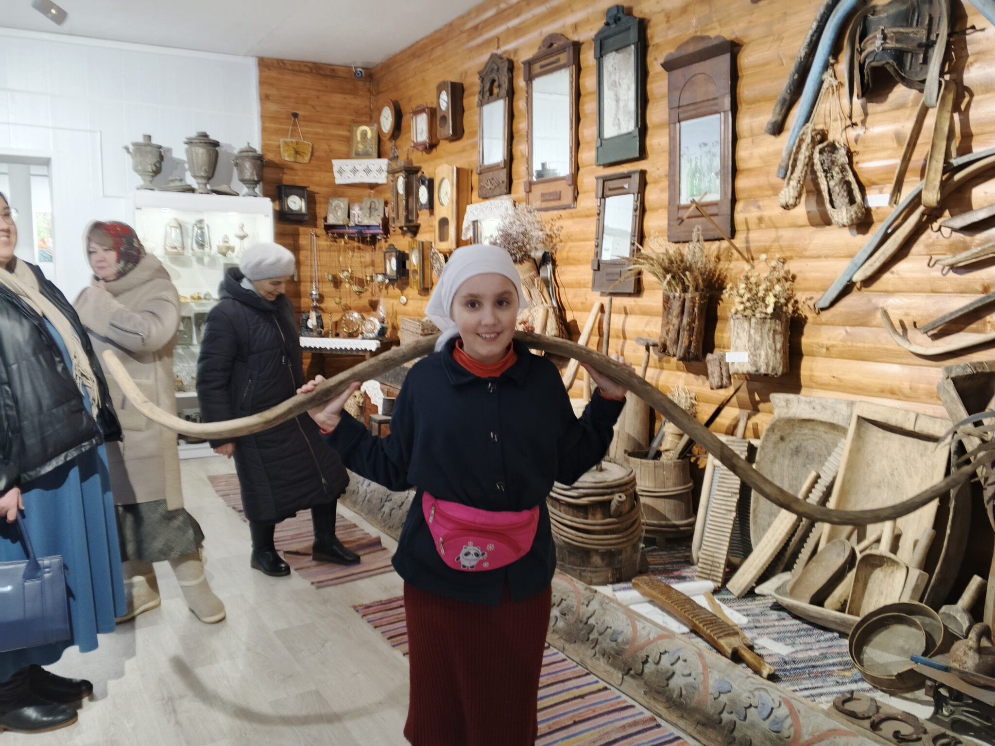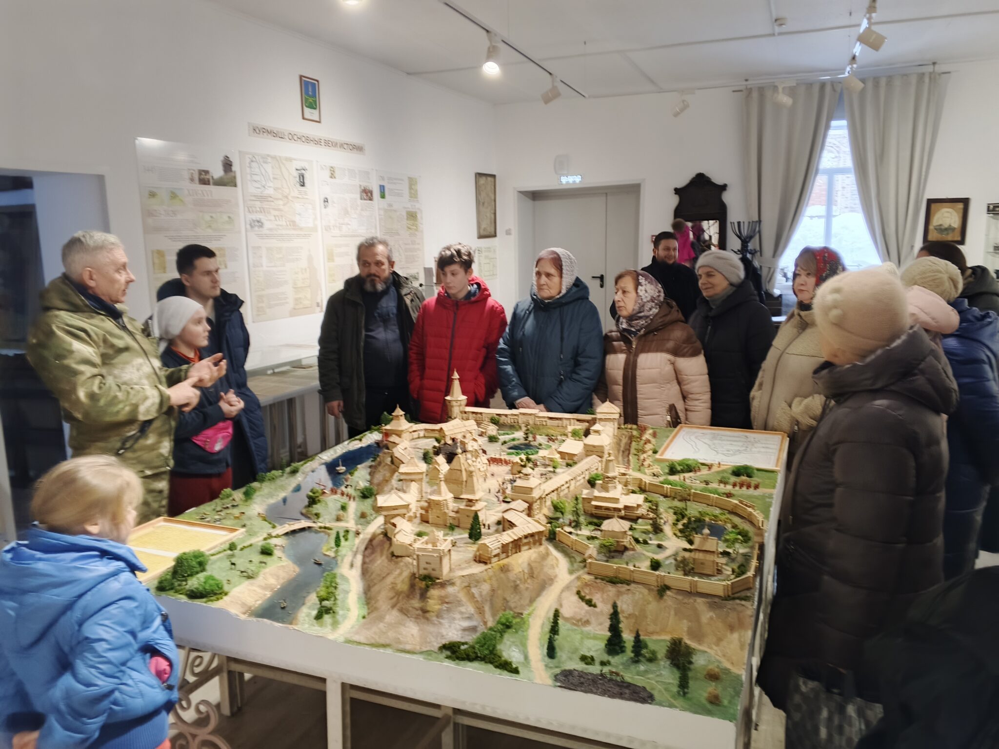 Путешествие в прошлое продолжилось в нашем Курмышском краеведческом музее, где хранительница музея Александрина Вигилянская с экскурсоводом Евгением Палачёвым в два голоса знакомили гостей с историей старинного курмышского края.