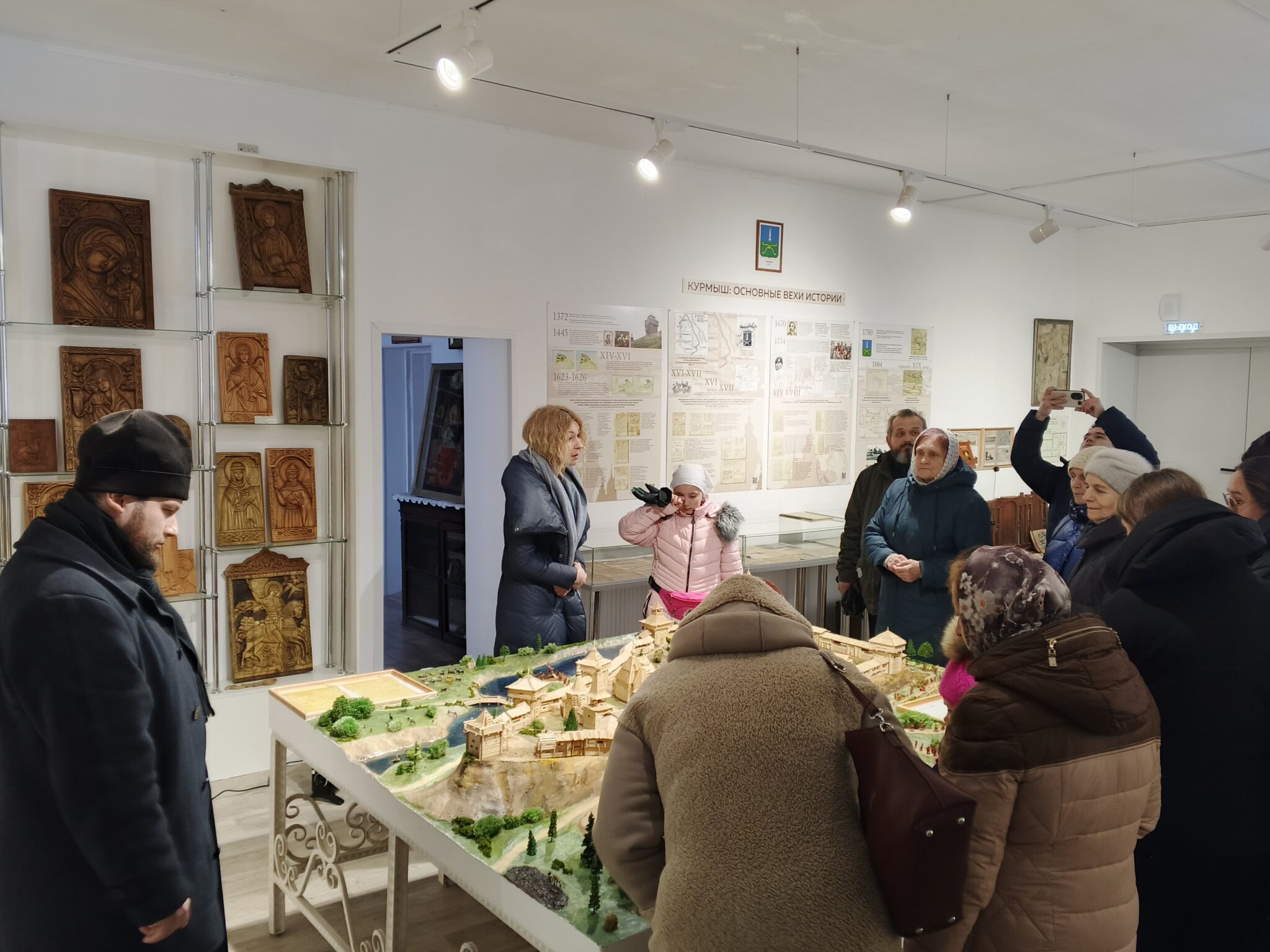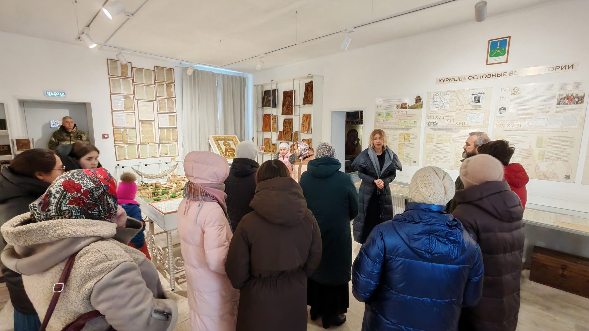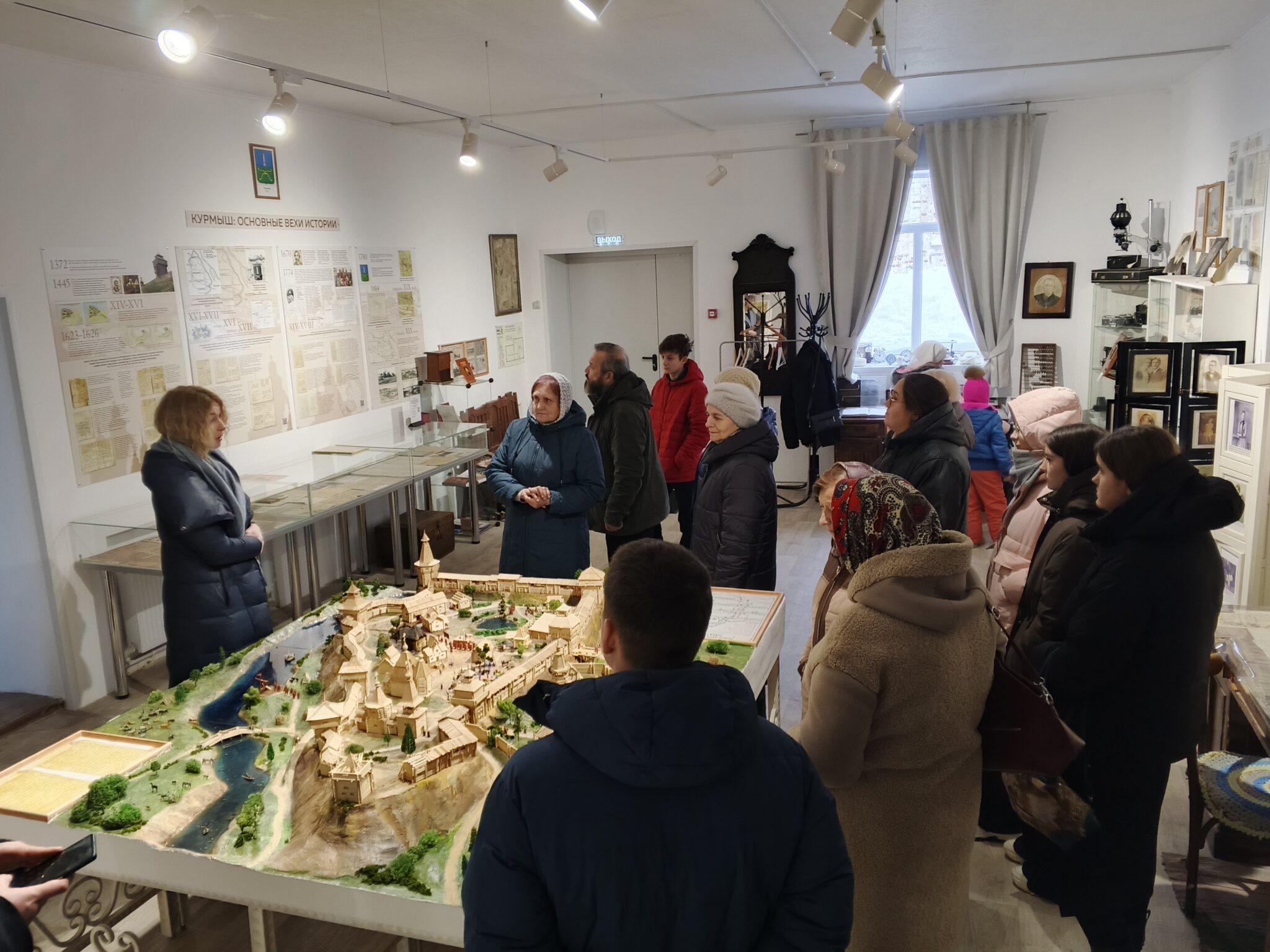 Паломники приехали в Курмыш из святых Бортсурман, где после Божественной литургии и молебна у мощей праведного Алексия гости побывали в музее старца, познакомившись с его духовным наследием.