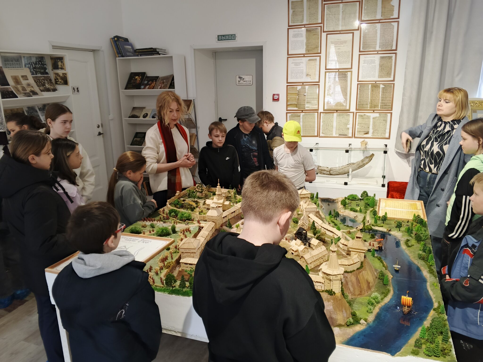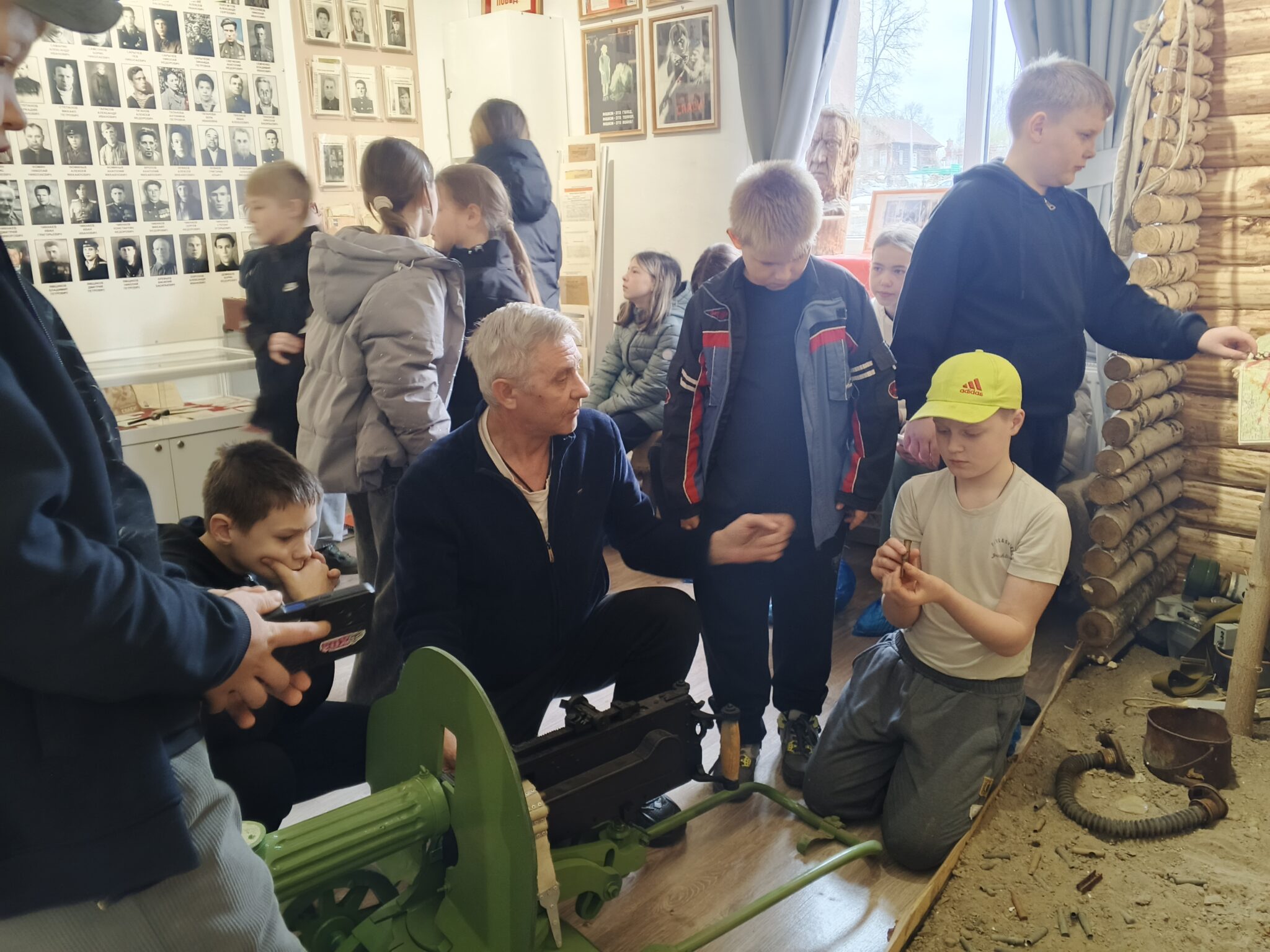 Ребята узнали об истории крепости, о деревянных и каменных курмышских храмах, о монастырях и учебных заведениях – пробежались по главным вехам курмышского прошлого. Конечно, исследовали и экспозицию сельского быта, и коллекцию монет, и старинные дамские принадлежности, и картинную галерею, и собрание икон. Побывали ребята и в зале Боевой Славы, где Евгений Палачёв в подробностях рассказал о предметах фронтовой жизни, найденных в ходе поисковых экспедиций по местам сражений.